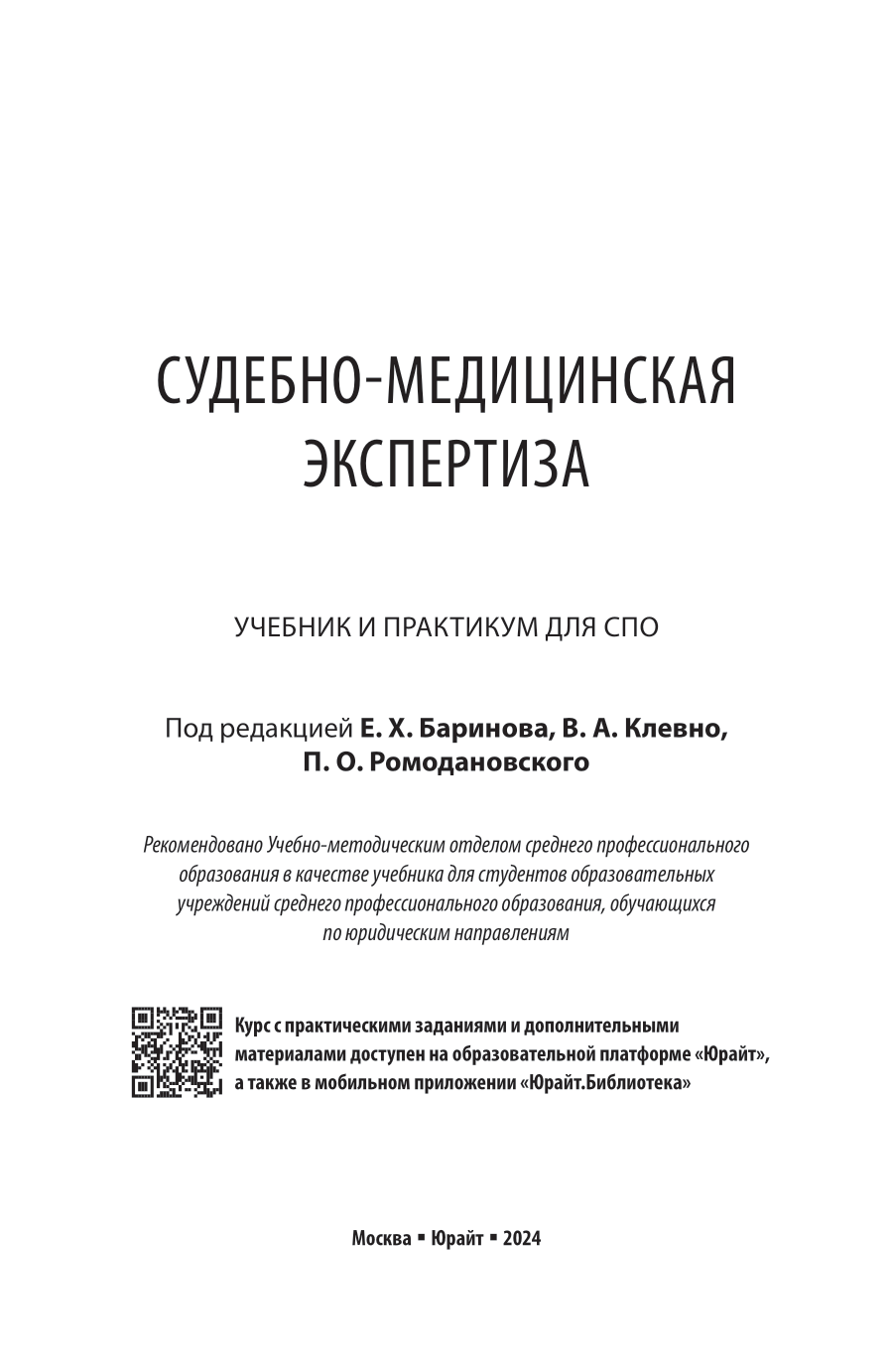 Судебно-медицинская экспертиза. Учебник и практикум для СПО (Владимир Александрович Клевно); ЮРАЙТ, 2024