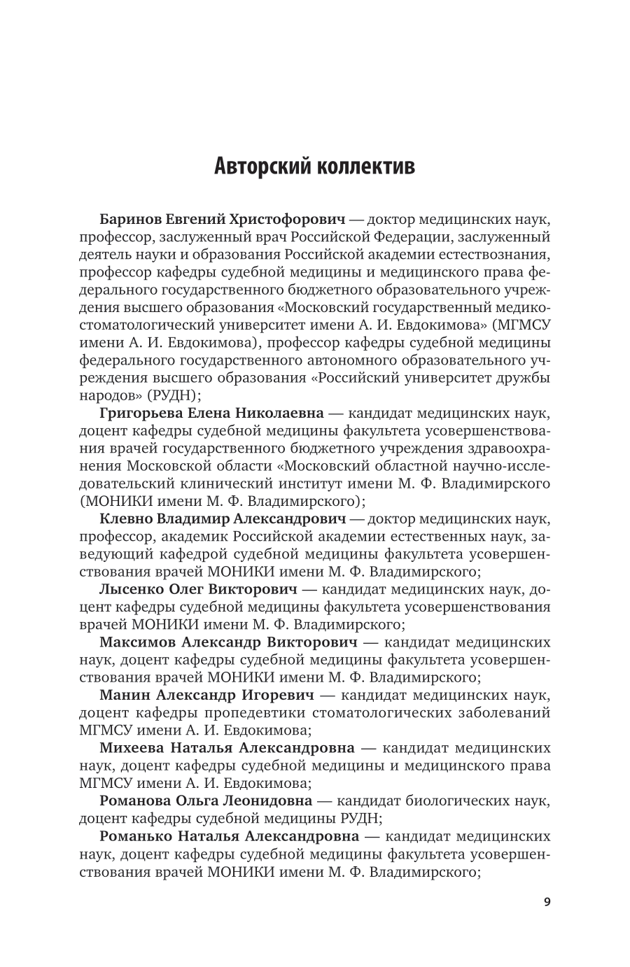 Курс подготовлен преподавателями кафедры судебной медицины и медицинского права Московского государственного медико-стоматологического университета имени А. И. Евдокимова, кафедры судебной медицины Московского областного научно-исследовательского клинического института имени М. Ф. Владимирского и кафедры судебной медицины Российского университета дружбы народов. Настоящее издание направлено на реализацию основных профессиональных образовательных программ высшего образования - программы подготовки кадров высшей квалификации в ординатуре по специальности 31.08.10 «Судебно-медицинская экспертиза». Соответствует актуальным требованиям Федерального государственного образовательного стандарта высшего образования. Для ординаторов кафедр судебной медицины, преподавателей, а также практических работников судебно-медицинских экспертных организаций. Может быть полезен для студентов медицинских вузов.