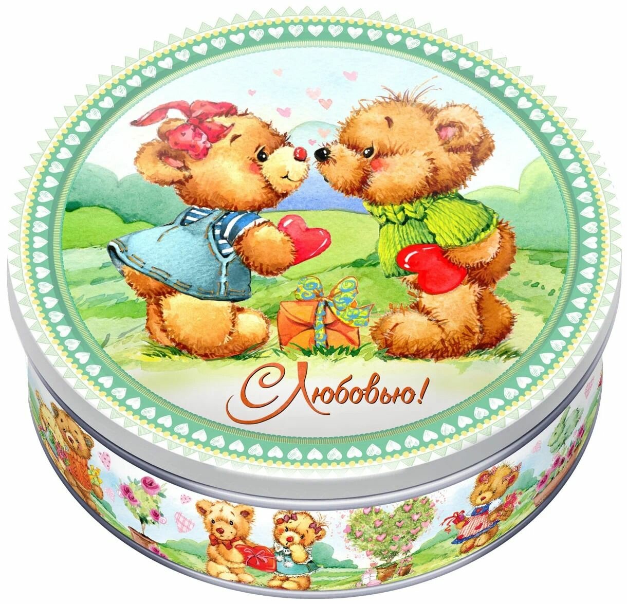 Сдобное печенье в форме сердечек в сахарной обсыпке Любимые мишки от группы компаний Сладкая сказка - прекрасный готовый подарок как на праздники 14 февраля и 8 марта, так и в любой другой день. Изображения мишек традиционно пользуются успехом среди женской половины населения, поэтому такая банка станет особенно актуальной в качестве подарка. Всего в серии представлены 4 разных дизайна, выполненного в изысканной технике подробной акварели. На каждой банке надпись: С любовью! После того, как печенье закончится, банки можно использовать для хранения мелочей, сыпучих продуктов, выпечки, бижутерии или в качестве дизайнерского украшения интерьера. Печенье производится на российской фабрике без использования трансжиров.