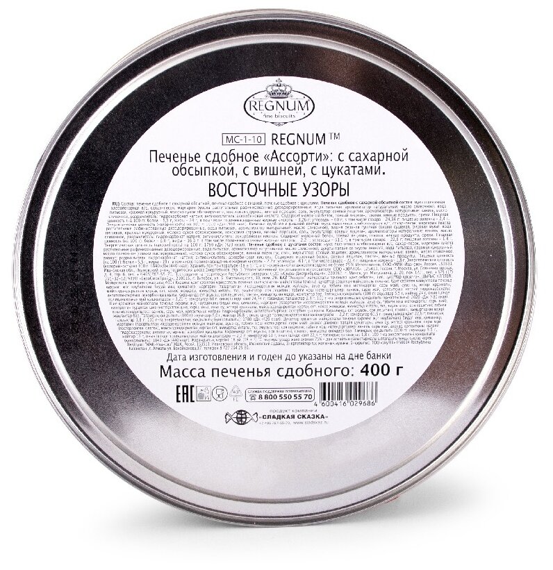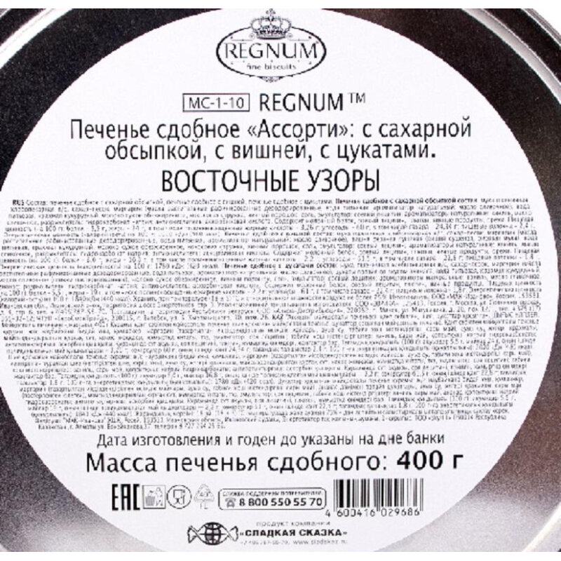 Печенье REGNUM ассорти Восточные узоры в сахарной обсыпке 400 г цукаты ананас Регнум