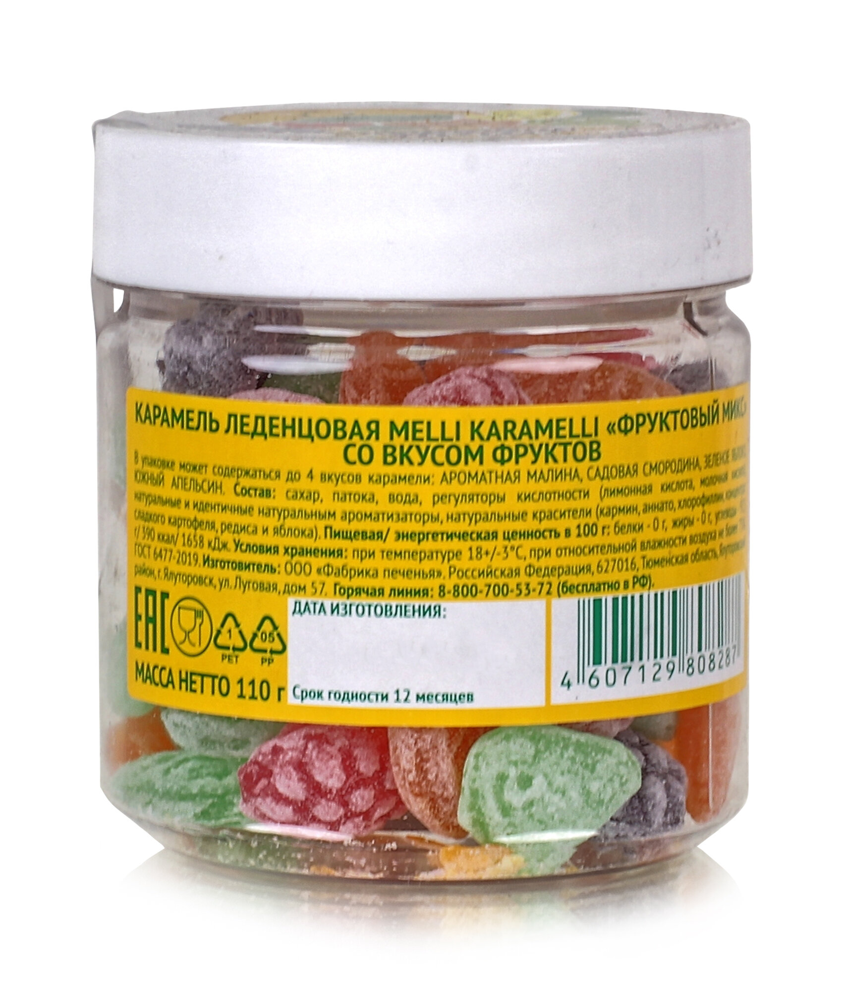 Фруктовая карамель в виде маленьких фруктовых долек - в баночке 3 самых популярных в России вкуса: спелой малины, сочного яблока и ароматного апельсина. В составе карамели только натуральные красители и ароматизаторы.Это здоровая альтернатива конфетам, в большом ассортименте представленном на полках продуктовых магазинов, 99% процентов из которых содержат вредные для здоровья ароматизаторы, имитаторы вкуса, консерванты, загустители и прочие химические компоненты.Карамель леденцовая Фруктовый микс - это возвращение в детство, когда одним из любимых лакомств было монпансье.