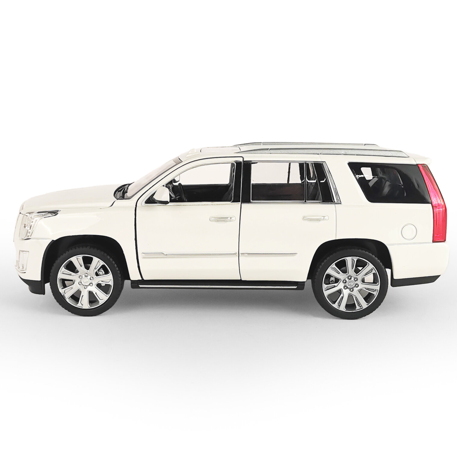 Перед вами превосходная коллекционная машинка Welly, которая сделана в точности как настоящий автомобиль Cadillac Escalade. Cadillac Escalade – внедорожник представительского класса. Модель данной машины выполнена в масштабе 1:24. Она очень детализирована и тщательно проработана от и до: стекла, диски, фары, боковые зеркала, дверные ручки, эмблема. У неё открываются передние двери и вращаются колёса. Чудесная машинка изготовлена из высококачественных ударопрочных безопасных материалов. Она обязательно порадует коллекционера и будет занимать достойное место в его игрушечном автопарке. Функционал: передние двери открываются; колёса вращаются. Масштаб: 1 к 24
