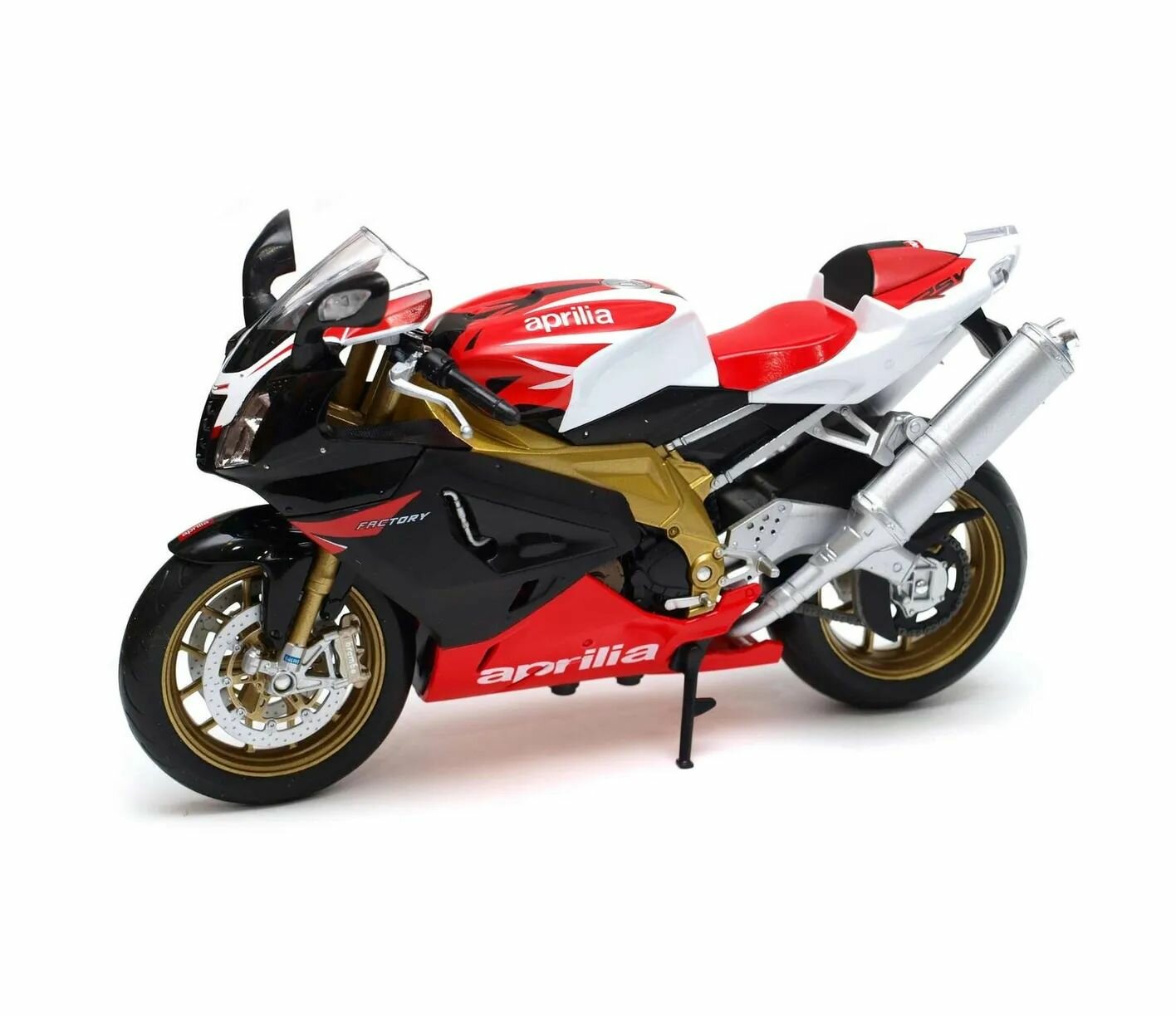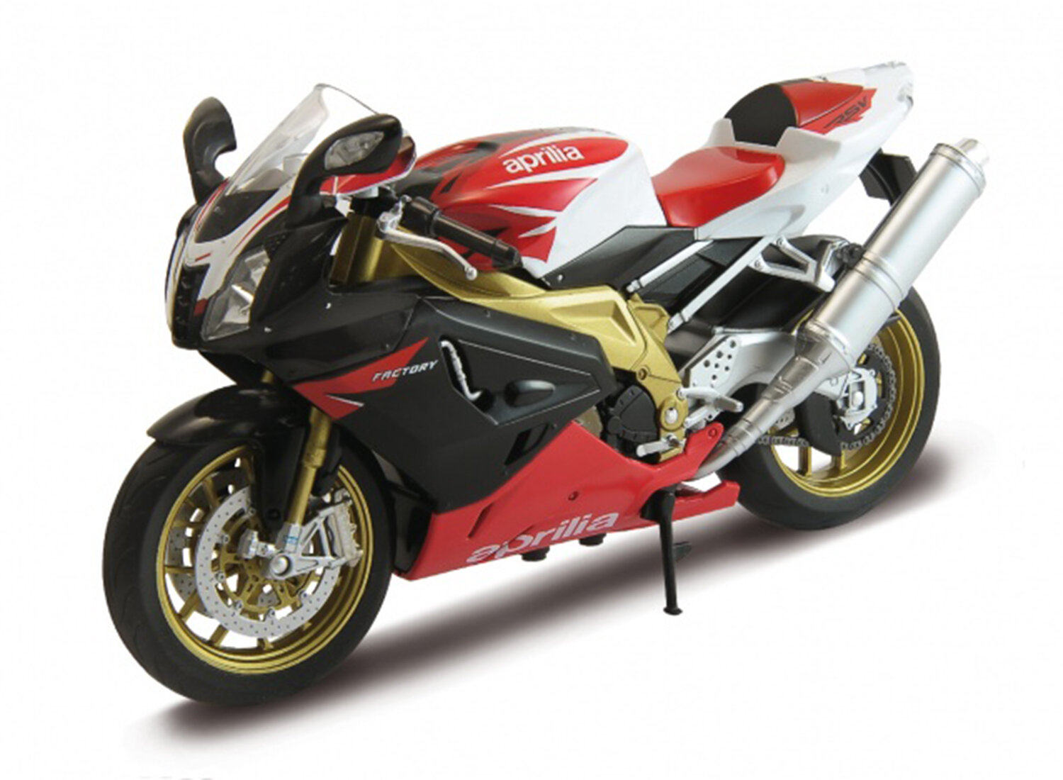 Теперь у вас есть возможность пополнить свою коллекцию игрушек очень реалистичной и высокодетализированной копией одного из самых скоростных и популярных транспортных мотоциклов в мире- Aprilia RSV 1000 R.Особенности:-Эта игрушка является уменьшенной копией мотоцикла Aprilia RSV 1000 R и в точности копирует его внешние особенности, а также характерные детали: подножка, лобовое стекло.-У модели вращающиеся колеса с реалистичными протекторами. Благодаря этому дети смогут катать ее и развивать при этом мелкую моторику рук.-Особую реалистичность внешнему виду игрушки придает имитация двигателя и серебристая цепь на заднем колесе.-Мотоцикл разнообразит игры детей и станет одним из участников захватывающей гонки, а также пополнит коллекцию юных автолюбителей.-Игрушка представлена в насыщенном красном цвете, который надолго сохранит первоначальную яркость благодаря используемым при окраске стойким красителям.-Корпус мотоцикла литой и выполнен из прочного металла, поэтому ему не страшны удары и падения, а дополнительные элементы – из сертифицированного пластика.-Игрушка сертицирована и производится по лицензии Aprilia.-Масштаб 1:10