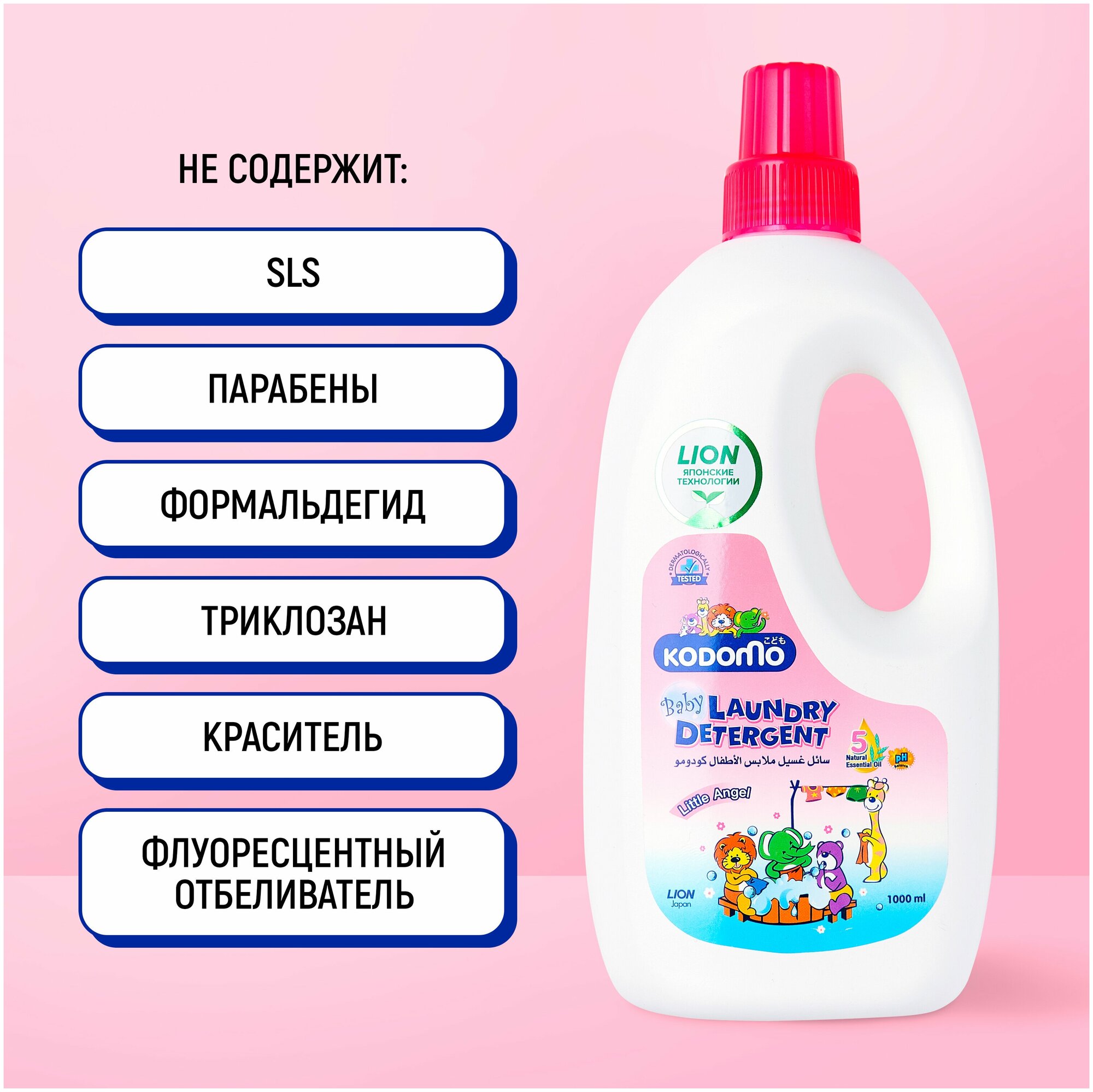 Кондиционер для детского белья Kodomo - это высокоэффективное и безопасное средство для смягчения детской одежды, содержит антибактериальные компоненты и минеральные экстракты. Благодаря активным смягчающим микроэлементам, проникающим в структуру ткани и расправляющим волокна, кондиционер удерживает воздух между волокнами ткани и делает детское белье воздушным, мягким и приятным на ощупь, что особенно важно для нежной кожи малыша. Особенности: - Содержит антибактериальные компоненты и минеральные экстракты. - Оберегает белье от преждевременного изнашивания. - Облегчает процесс глажения. - Снимает статическое электричество с натуральных и синтетических тканей. Способ применения: Тщательно взболтать перед использованием. При последнем полоскании использовать 1 полный колпачок кондиционера на 6 литров воды и замочить бельё на 1-2 минуты, затем дать ему высохнуть.