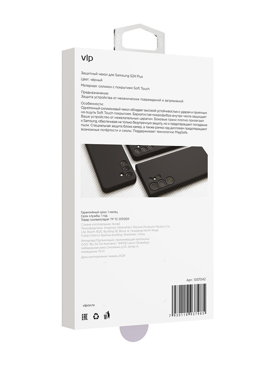 Чехол VLP для Galaxy S24+, силикон черный