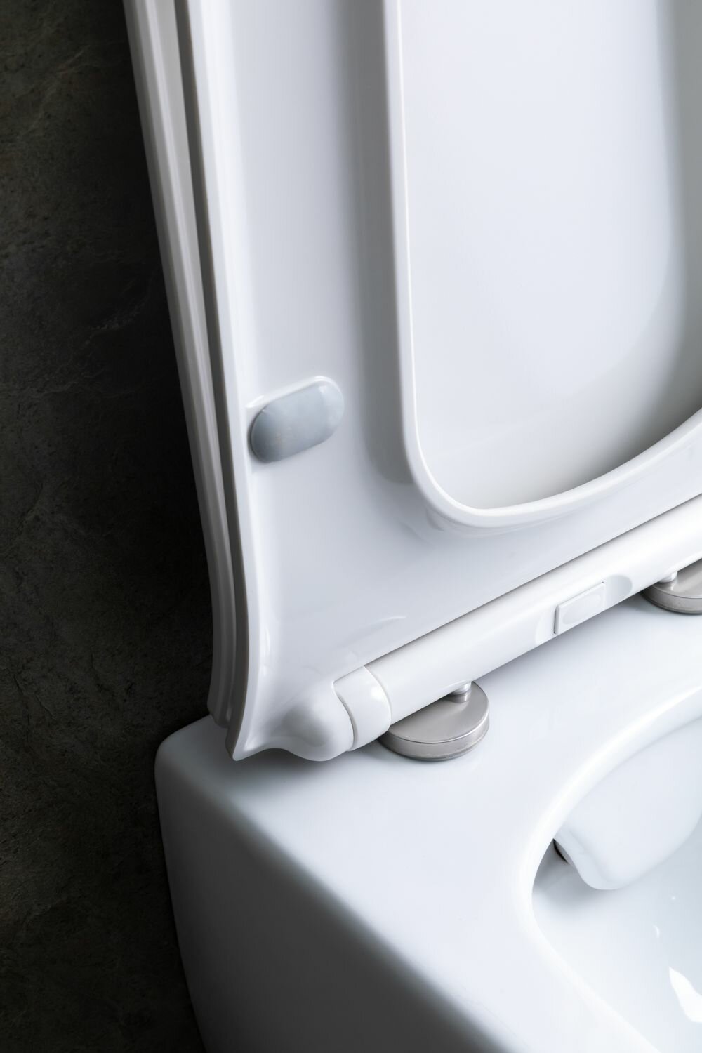 - Безободковая конструкция унитаза с системой смыва Rimless обеспечивает равномерный поток воды, бесшумный и качественный смыв практически без брызг.