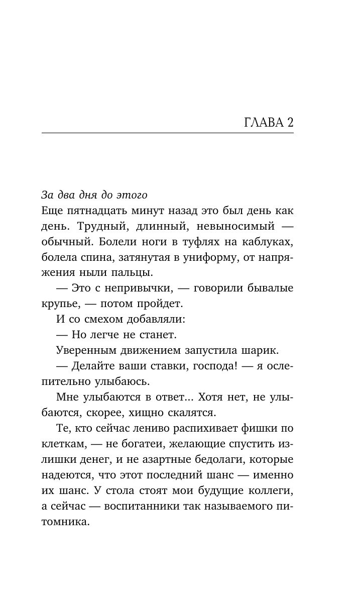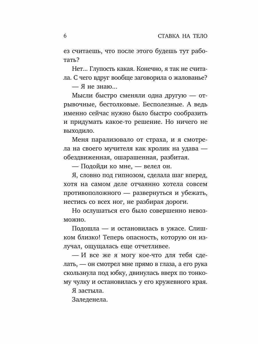 Для Магды работа крупье в лучшем казино – это отличный шанс вытащить свою семью из нищеты, а получить это место – редкостная удача. Но ее радость была недолгой. Магда совершает ошибку и заведение теряет большие деньги. Теперь у девушки огромный долг перед владельцем – человеком, который держит в руках чужие судьбы. Игра начинается, и ставки становятся все выше… Окунитесь в атмосферу азарта и страсти вместе с книгой "Ставка на тело". Готовы ли вы к такой игре?