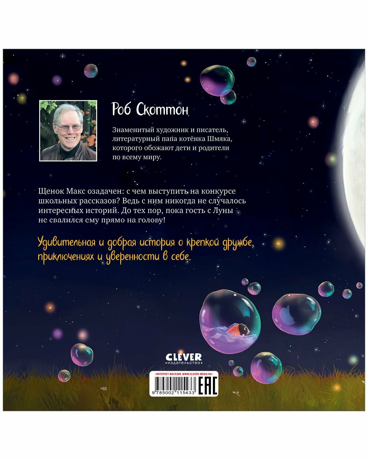 Щенок Макс озадачен: с чем выступить на конкурсе школьных рассказов? Ведь с ним никогда не случалось интересных историй. До тех пор, пока гость с Луны не свалился ему прямо на голову! Макс, а вместе с ним и маленький читатель, узнают: иногда для того, чтобы поверить в себя, нужен верный друг для которого ты лучше всех во Вселенной.