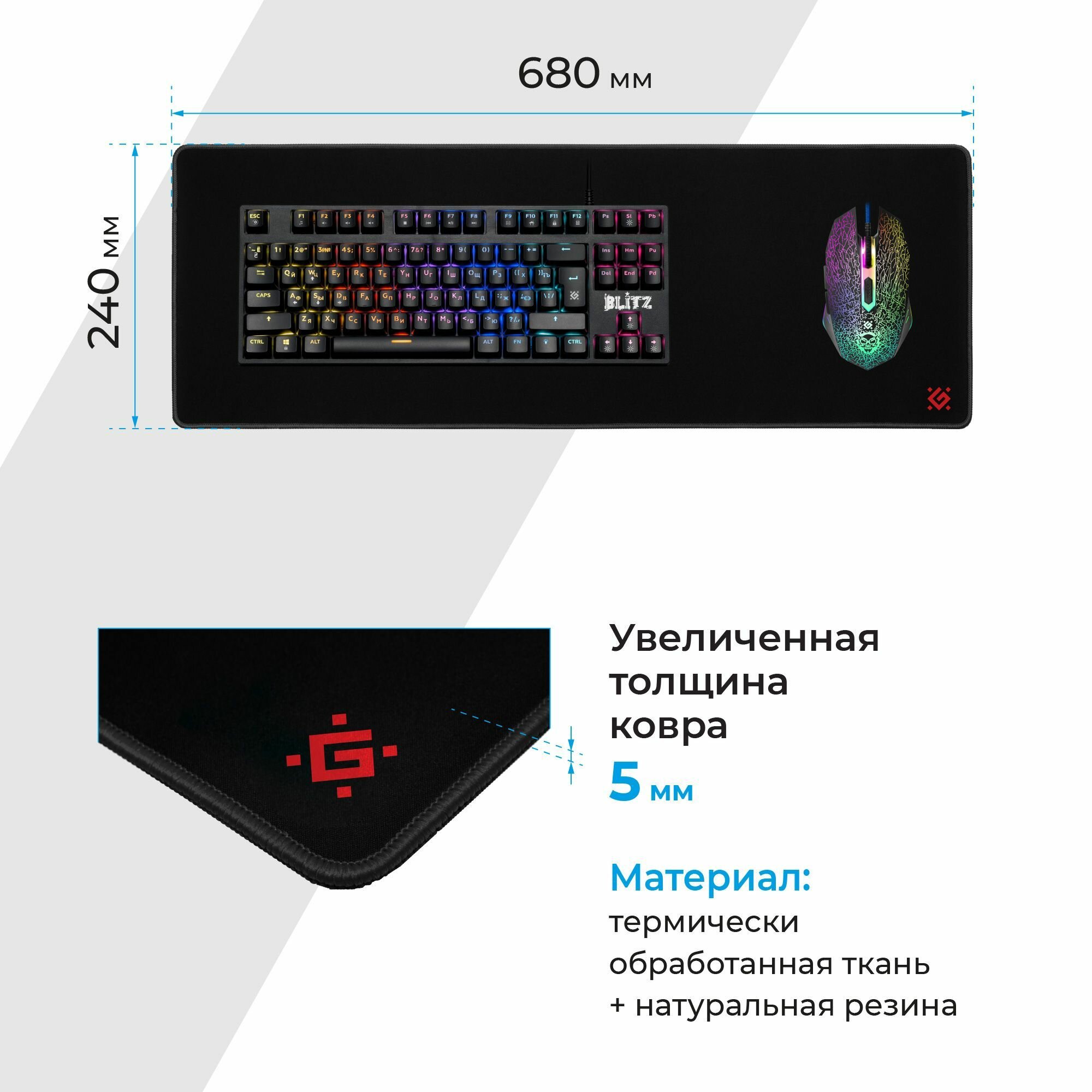 Коврик для мыши Defender Black One (XL) [50006] (размер: 680х240х5мм)