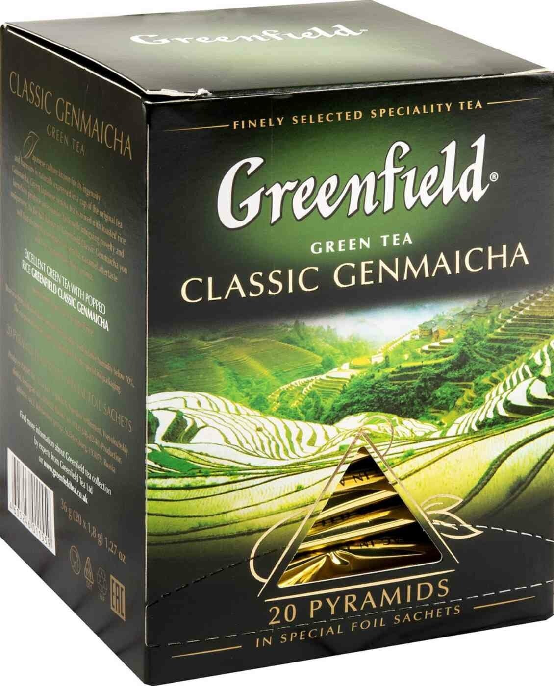 Чай зеленый Greenfield Classic Genmaicha с воздушным рисом 20x18 г