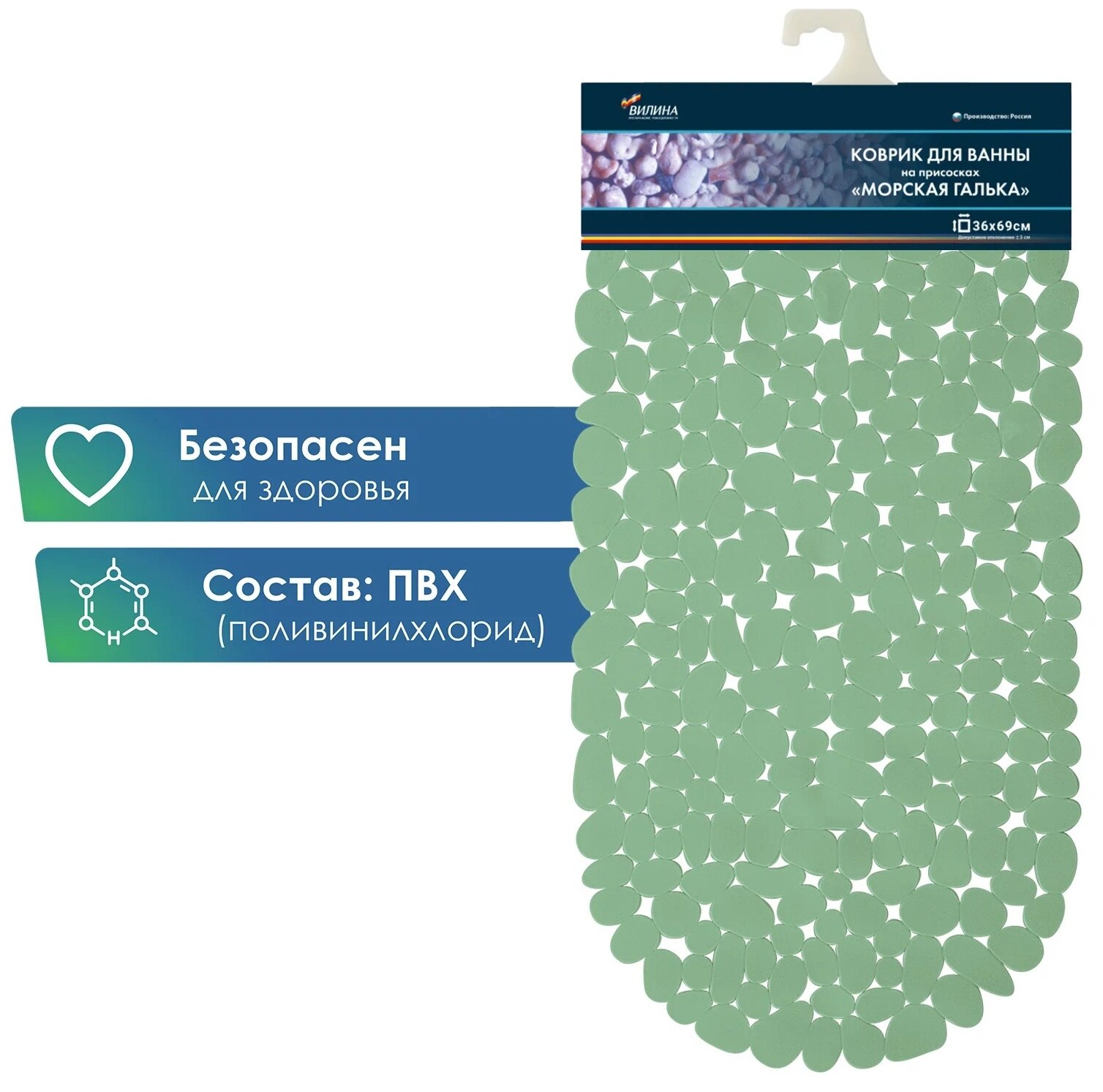 Сервис сравнения цен СкидкаГИД предлагает сравнить цены на товар «Коврик для ванны Вилина на присосках ПВХ галька прозрачный 36х69 см»