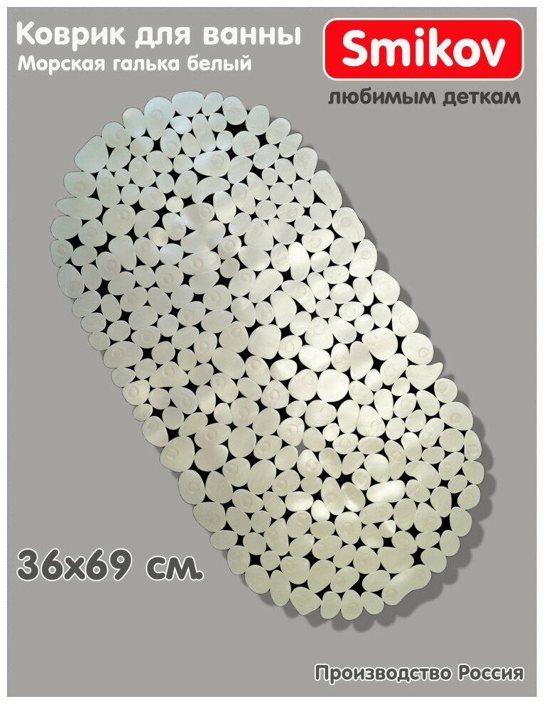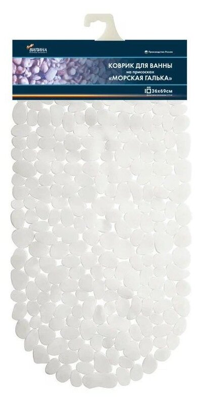 Коврик для ванной антискользящий, с присосками в форме морской гальки. Коврик выполнен в современных мягких пастельных тонах и впишется в любую ванную комнату.