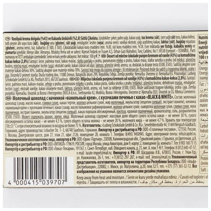 На сегодняшний день товар «Шоколад порционный Schogetten Black & White молочный 100 г» можно купить с кешбеком в 4 магазинах: Яндекс Еда, delikateska, Ашан, ГЛОБУС