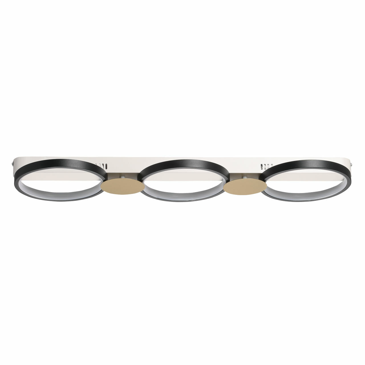 Металлическое основание подвесного светильника окрашено в черный цвет. Плафоны выполнены из сплава алюминия с цинком и окрашены в черный цвет. Отдельные элементы плафонов гальванизированы в цвет золота. Светодиодные источники света закрыты белым матовым силиконом.