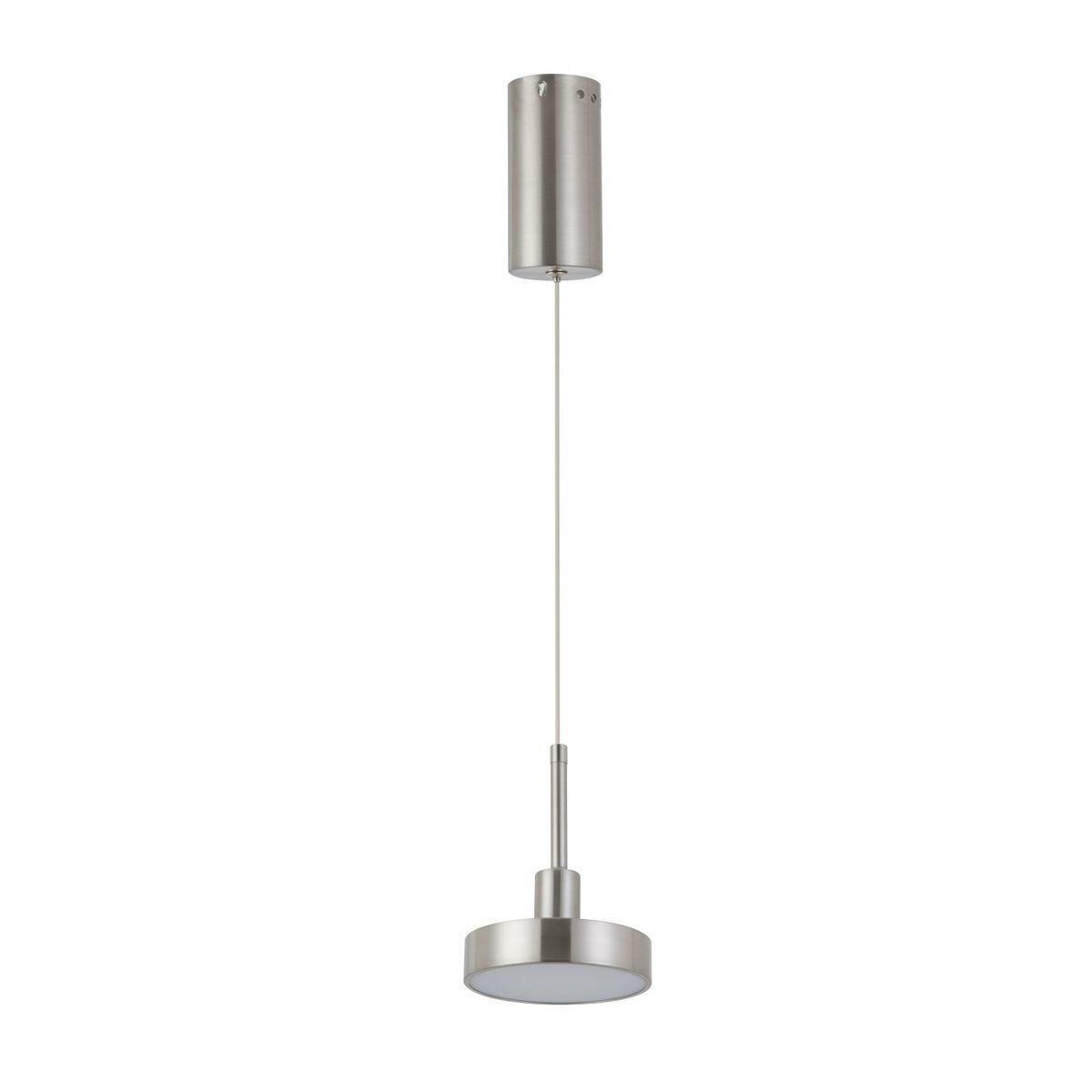 Металлическое основание подвеса гальванизировано в цвет никеля. Корпус плафона выполнен из сплава алюминия и гальванизирован в цвет основания. Светодиодный источник света закрыт матовым акрилом.