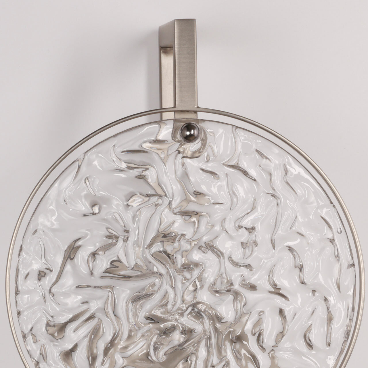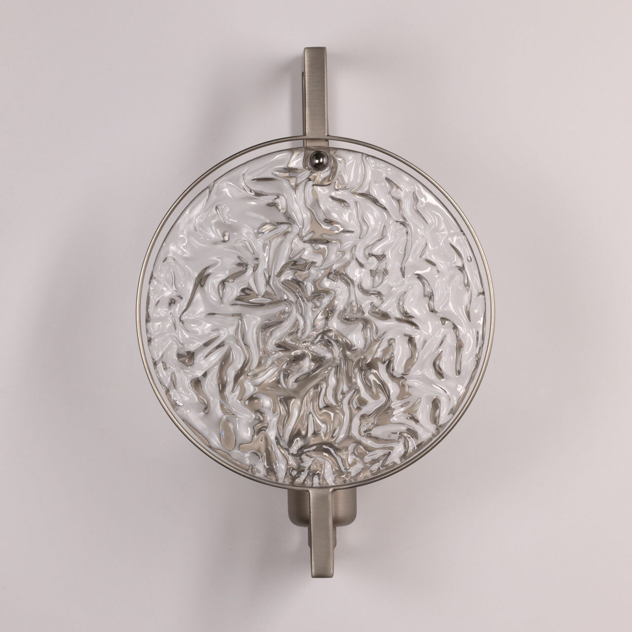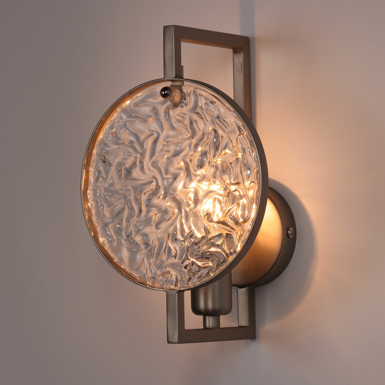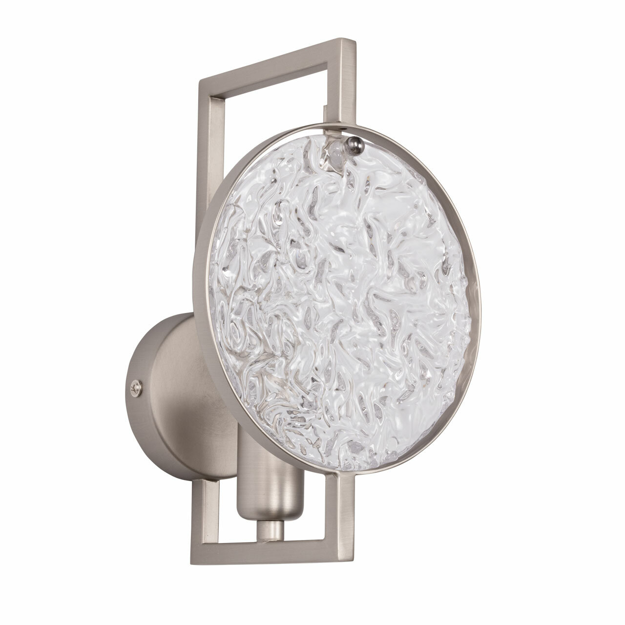 Настенное бра в цвете матового никеля выглядит стильно и современно. Оригинальный декоративный элемент из прозрачного фактурного стекла придает бра уникальности, делают ее прекрасным дополнением к интерьеру. Заменяемый источник света удобен в эксплуатации. Металлическое основание настенного бра гальванизировано в цвет матового никеля. Декор выполнен из прозрачного фактурного стекла.