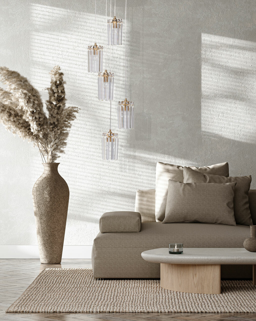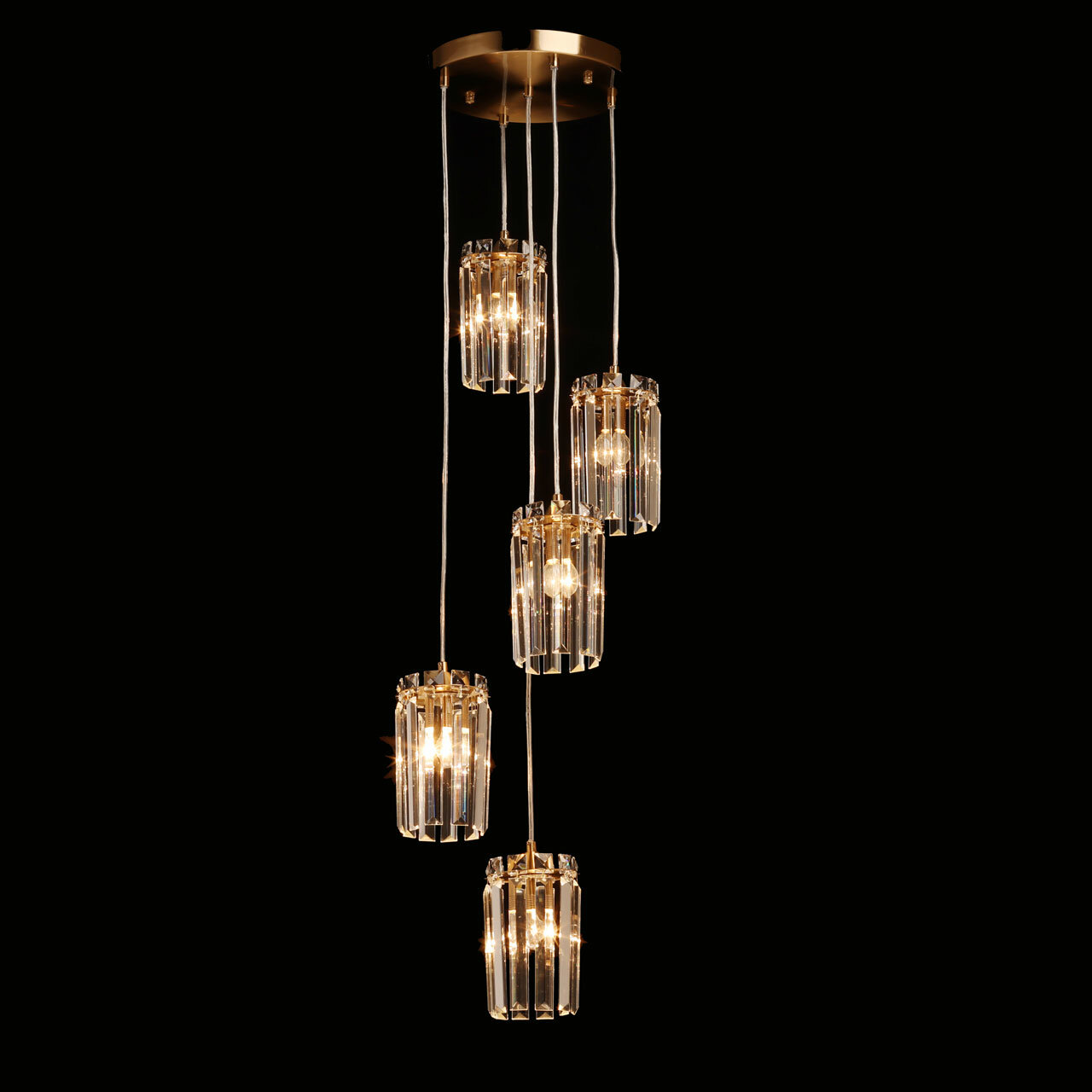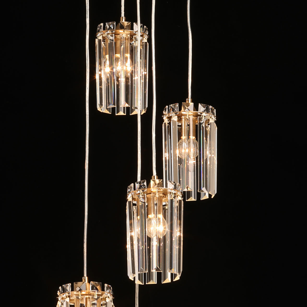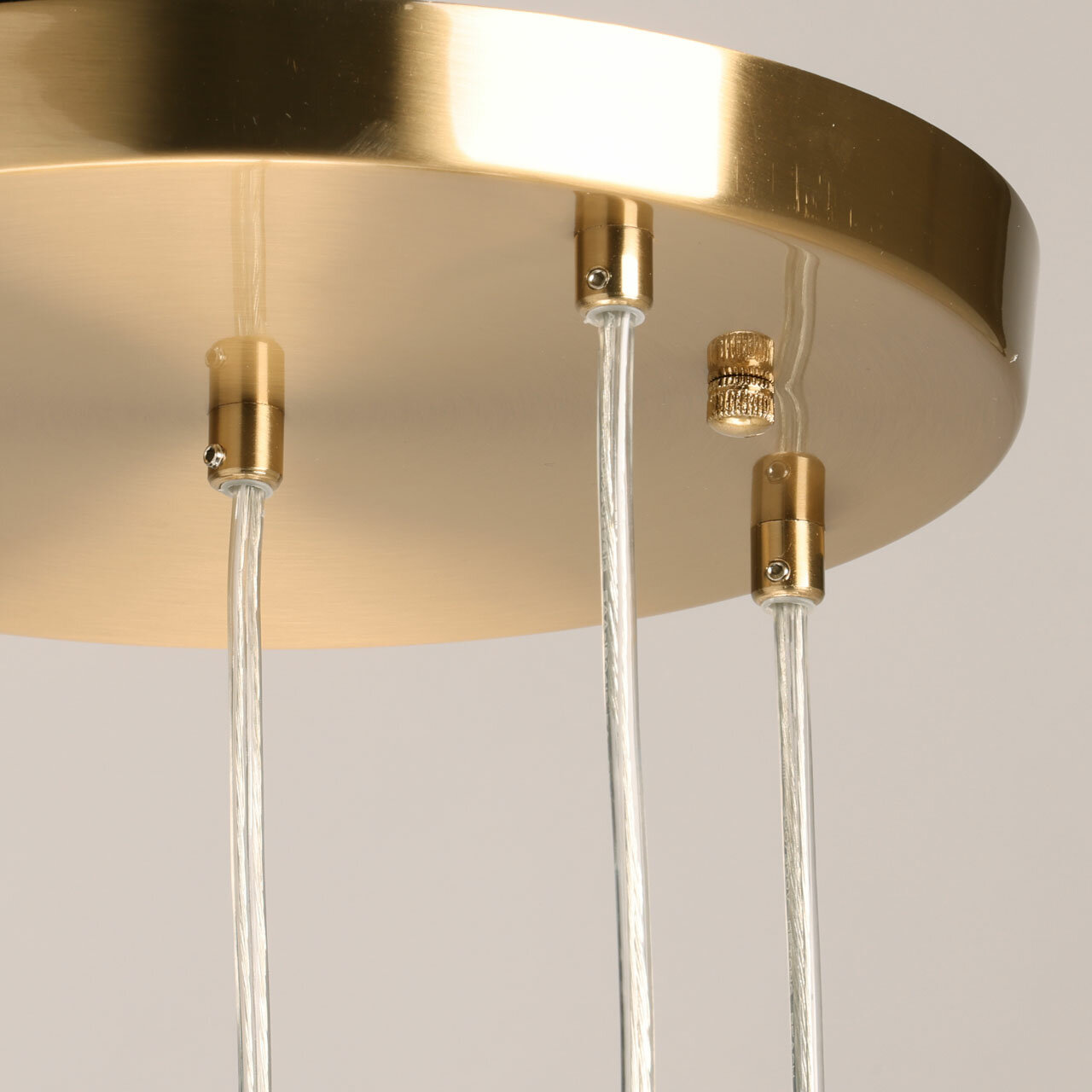Актуальный цвет латуни придает люстре стильный и современный вид. Вытянутые хрустальные элементы декора добавляют люстре элегантности. Заменяемые источники света удобны в эксплуатации. Возможность регулировать комфортную высоту. Металлическое основание подвесной люстры гальванизировано в цвет латуни. Светильник декорирован подвесками из прозрачного хрусталя вытянутой формы.