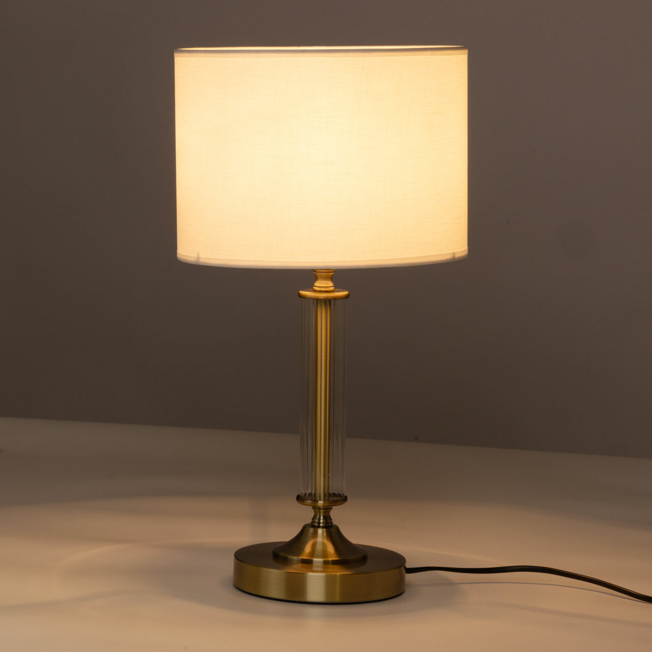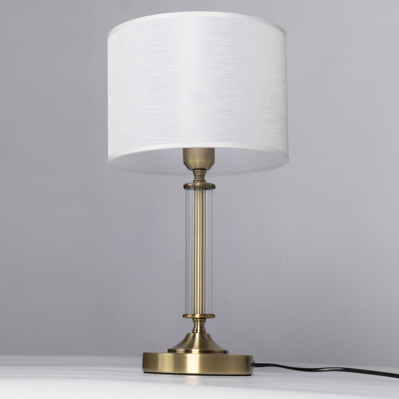 Цвет античной бронзы выглядит с особенной изысканностью и сохраняет свою актуальность. Белый текстильный абажур создает мягкое освещение, внося уют в пространство комнаты. Термостойкий акрил надежно защищает текстиль абажура. Особую эстетику настольной лампе придает декор из прозрачного стекла. Заменяемый источник света удобен в эксплуатации.