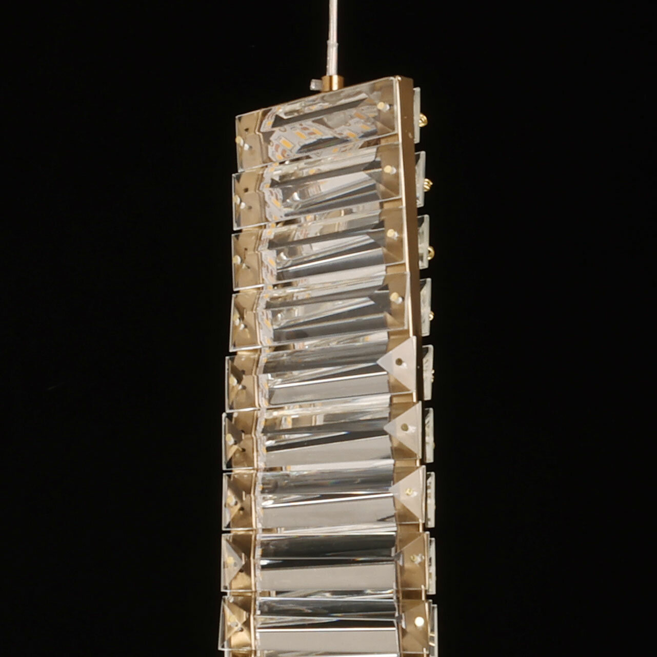 Актуальный цвет латуни выглядит уютно и актуально. Оригинальный плафон из хрустальных элементов добавляет подвесу элегантности и стиля. Хрусталь создает красивую игру света и отражения, достигая максимального эстетического эффекта. Светодиодные источники света экономичны и безопасны. Возможность регулировать комфортную высоту.