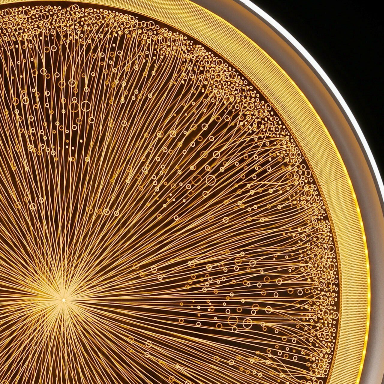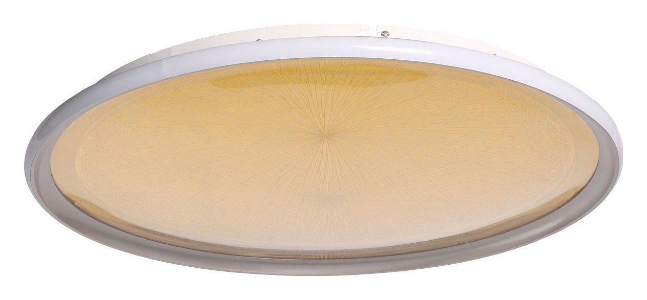 Универсальный белый цвет прекрасно подойдет к любому цветовому решению интерьера. Многорежимность с изменением цветовой температуры от 3000К до 6500К является элементом светодизайна и позволяет подобрать комфортную температуру света. Качественные светодиоды и корпус из сплава алюминия обеспечивают яркое освещение и долгий срок службы. Прозрачный акрил выполнен с элементами 3D-эффекта благодаря чему светильник становится арт объектом. Наличие ПДУ обеспечивает комфортное переключение режимов освещения. Компактный светильник для стандартной высоты потолка. Светодиодные источники света экономичны и безопасны. Металлическое основание потолочной люстры окрашено в белый цвет. Корпус плафона выполнен из сплава алюминия с цинком и окрашен в серебряный цвет. Изнутри плафон гальванизирован в цвет золота. Светодиодные источники света закрыты прозрачным акрилом с 3D-эффектом. Светодиоды по периметру плафона закрыты белым матовым силиконом.