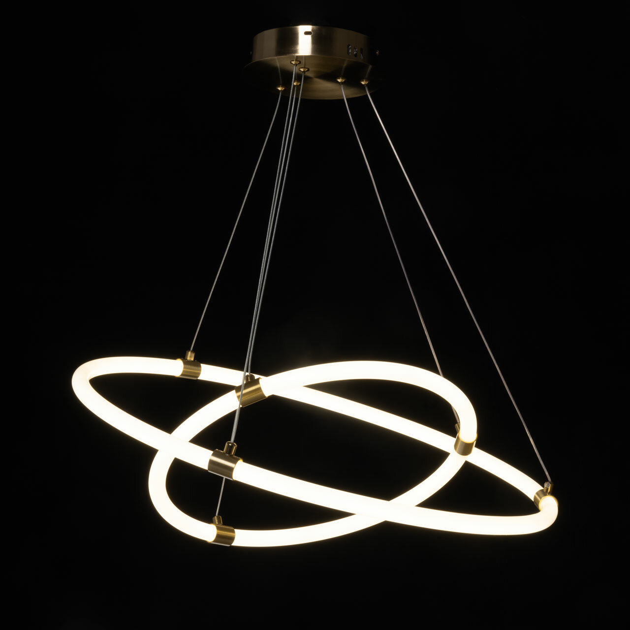 Актуальный цвет латуни и качественная гальваника сохраняют привлекательный вид люстры на долгие годы. Благодаря геометрии круга люстра становится интересным элементом интерьера. Светодиодные источники света экономичны и безопасны. Возможность регулировать комфортную высоту. Металлическое основание подвесной люстры гальванизировано в цвет латуни. Светодиодный источник света закрыт белым матовым акрилом.