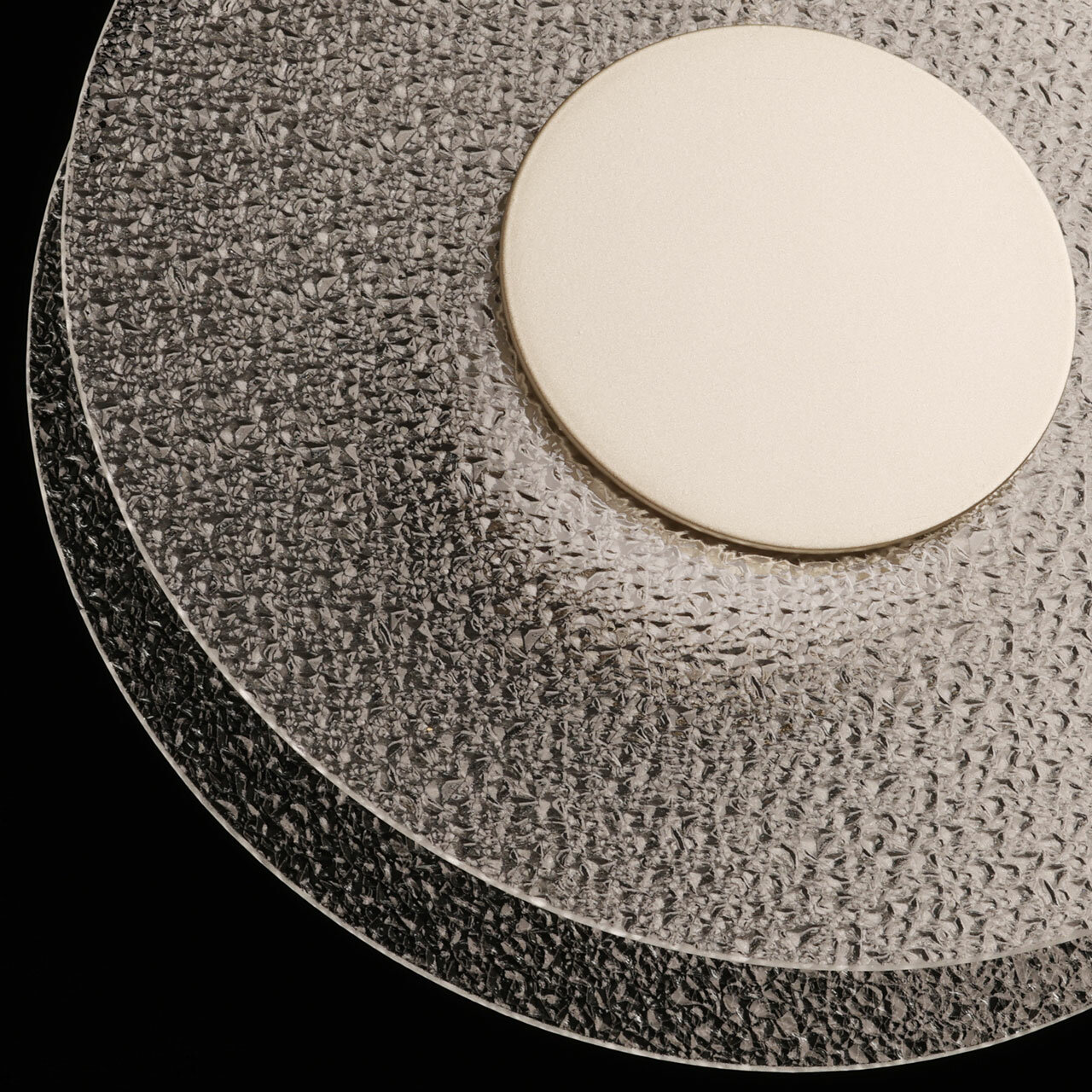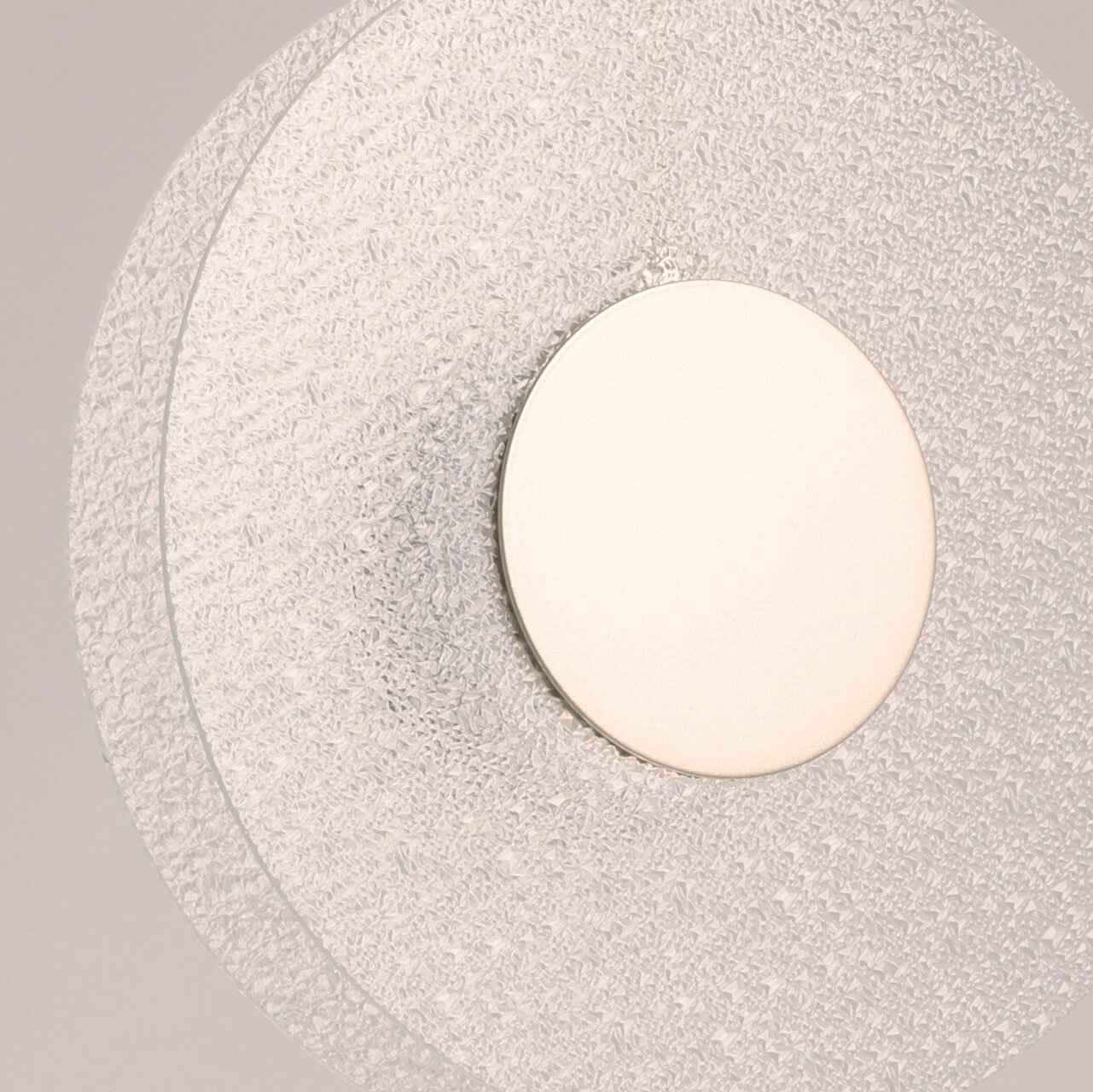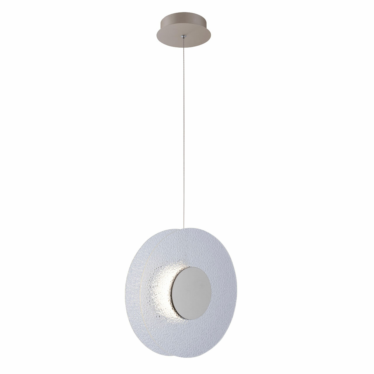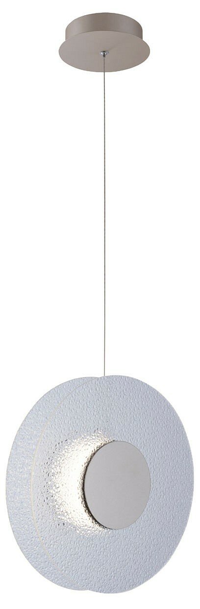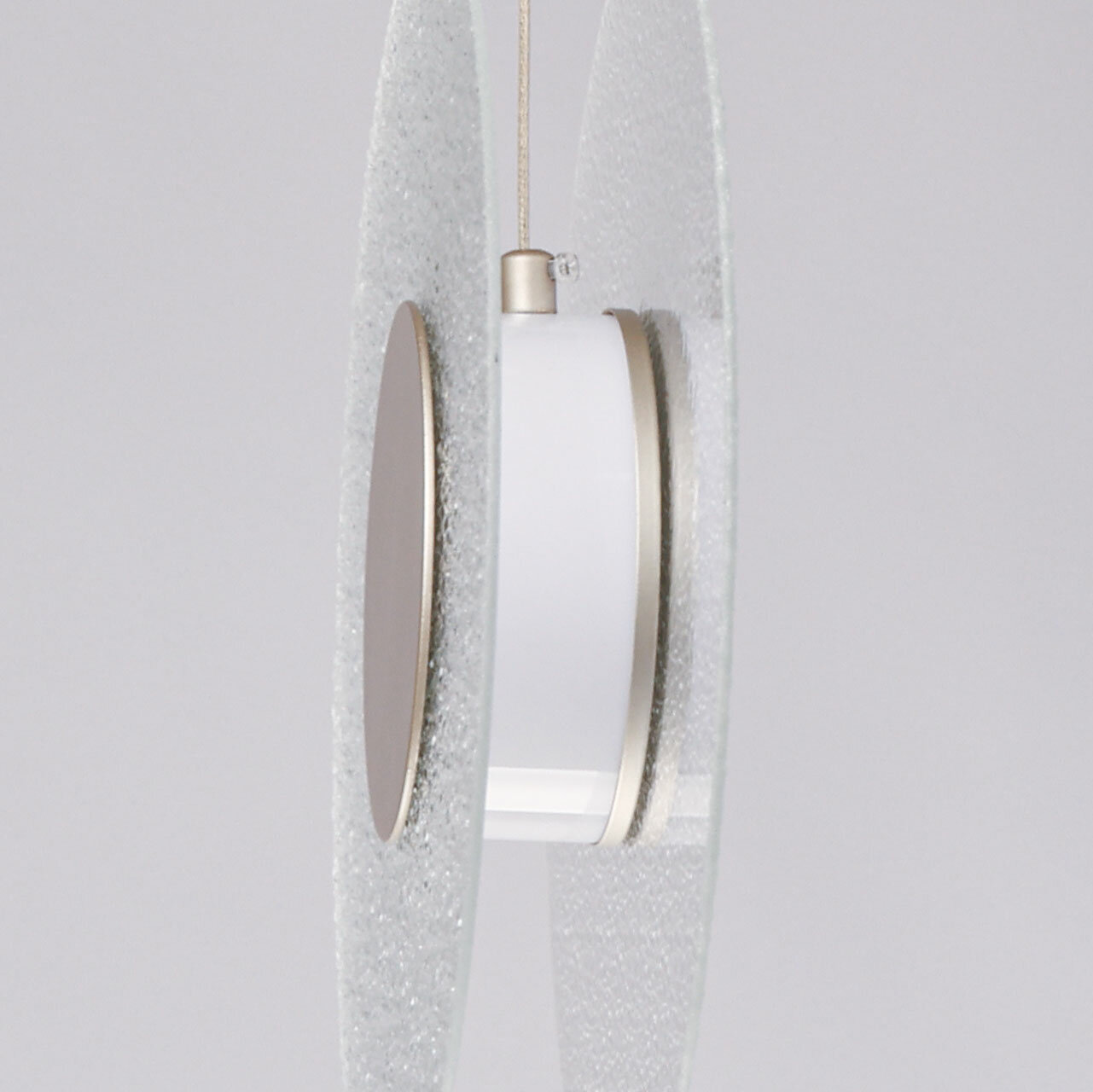 Модный цвет никеля в тренде. Качественные материалы плафона обеспечивают долговечность и надежность. Матовый акрил плафона создает комфортное освещение. Акцентный декор фактурным стеклом придает подвесу изысканность и уникальность, подчеркивая его прекрасный дизайн. Возможность регулировать комфортную высоту. Светодиодные источники света экономичны и безопасны.