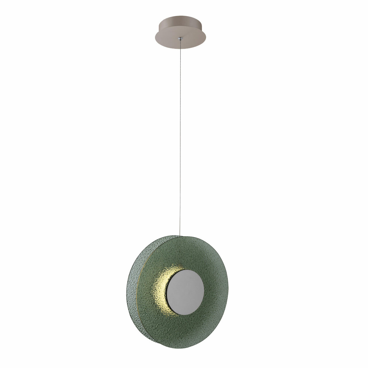 Модный цвет никеля в тренде. Качественные материалы плафона обеспечивают долговечность и надежность. Матовый акрил плафона создает комфортное освещение. Акцентный декор фактурным стеклом зеленого цвета придает подвесу изысканность и уникальность, подчеркивая его прекрасный дизайн. Возможность регулировать комфортную высоту. Светодиодные источники света экономичны и безопасны.