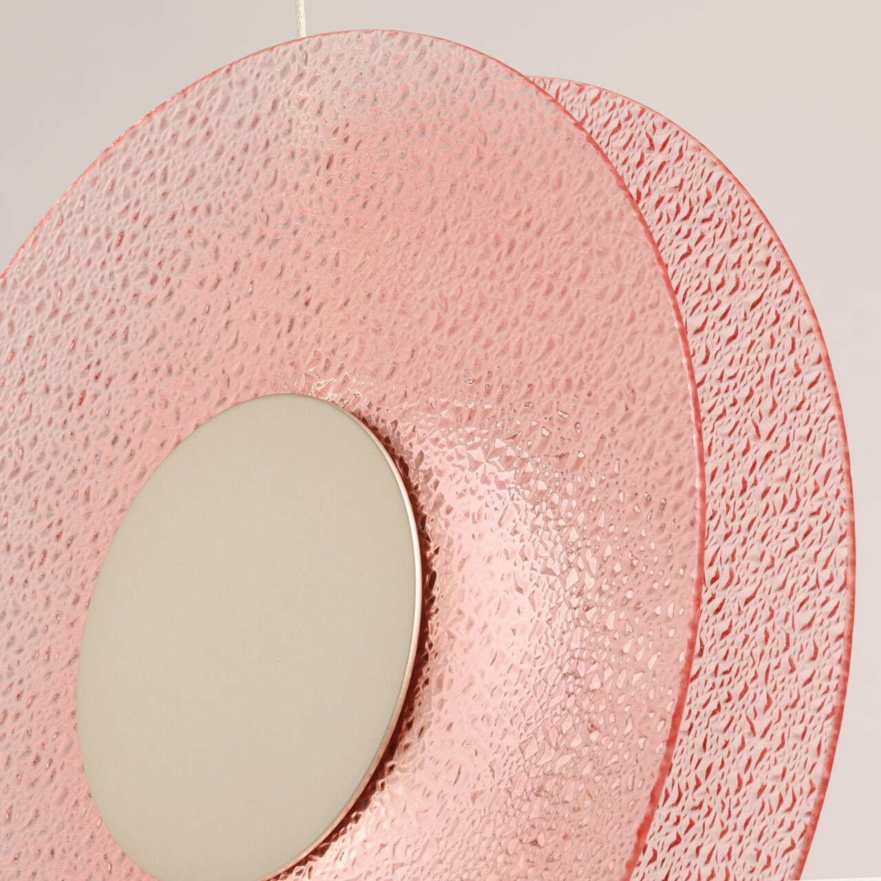 Модный цвет никеля в тренде. Качественные материалы плафона обеспечивают долговечность и надежность. Матовый акрил плафона создает комфортное освещение. Акцентный декор фактурным стеклом розового цвета придает подвесу изысканность и уникальность, подчеркивая его прекрасный дизайн. Возможность регулировать комфортную высоту. Светодиодные источники света экономичны и безопасны.