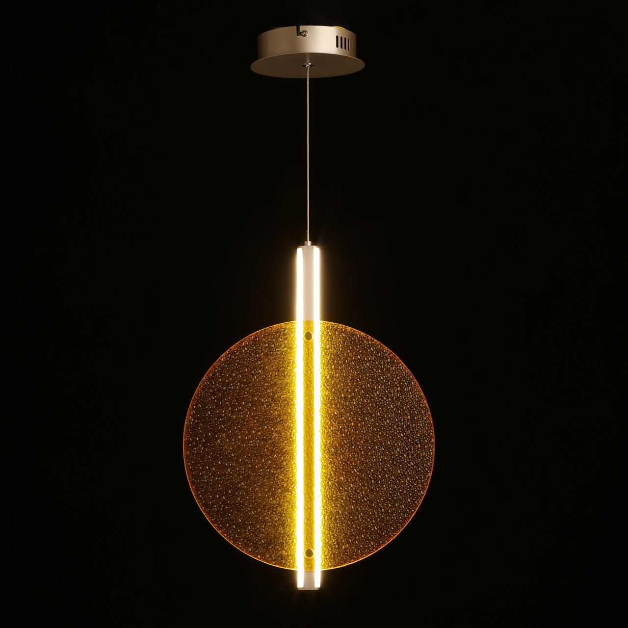 Модный цвет никеля в тренде. Качественные материалы плафона обеспечивают долговечность и надежность. Матовый акрил плафона создает комфортное освещение. Акцентный декор фактурным стеклом желтого цвета придает подвесу изысканность и уникальность, подчеркивая его прекрасный дизайн. Возможность регулировать комфортную высоту. Светодиодные источники света экономичны и безопасны.