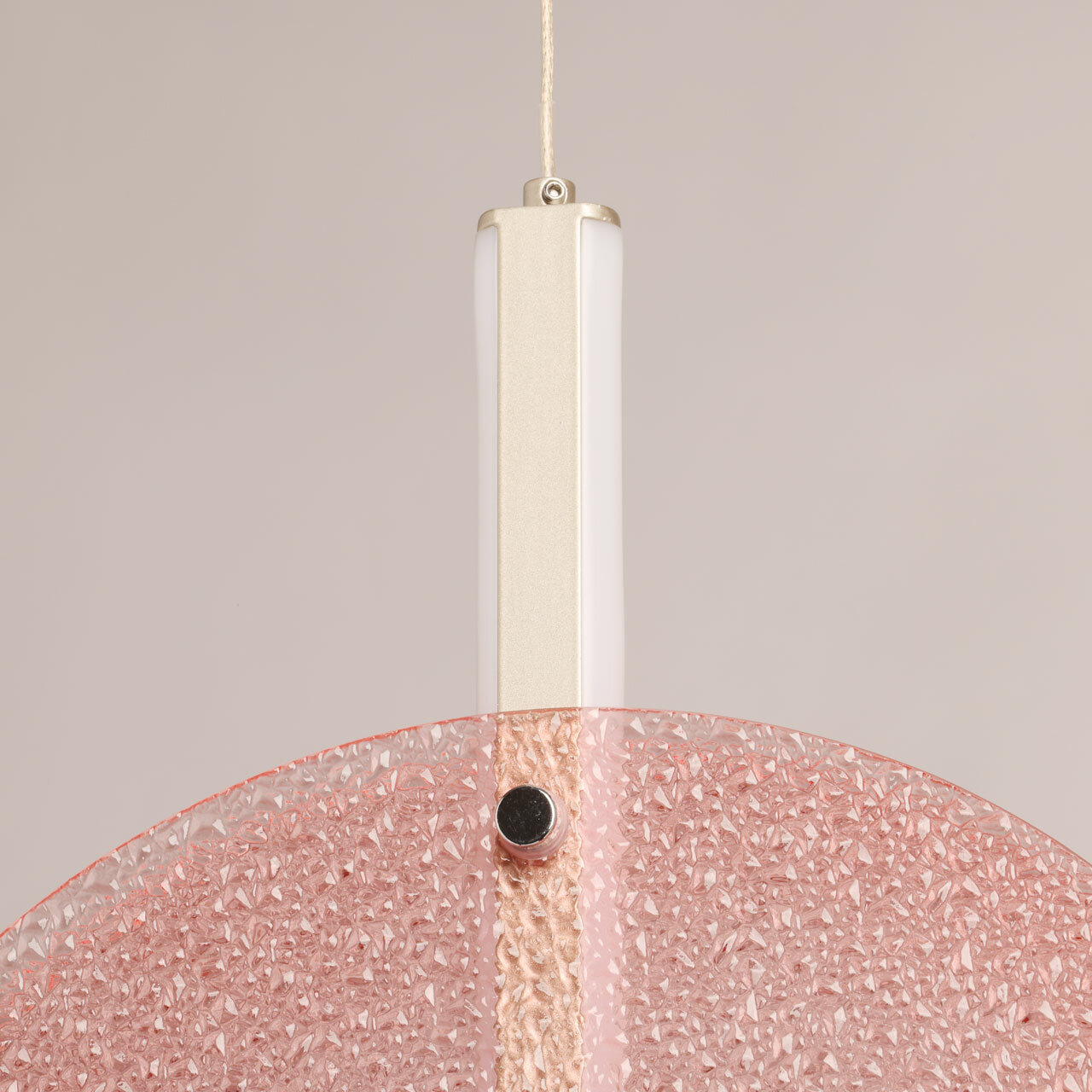 Модный цвет никеля в тренде. Качественные материалы плафона обеспечивают долговечность и надежность. Матовый силикон плафона создает комфортное освещение. Акцентный декор фактурным стеклом розового цвета придает подвесу изысканность и уникальность, подчеркивая его прекрасный дизайн. Возможность регулировать комфортную высоту. Светодиодные источники света экономичны и безопасны.