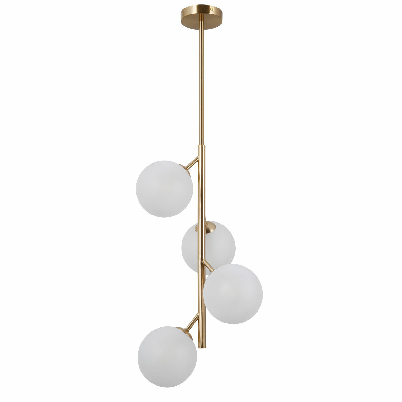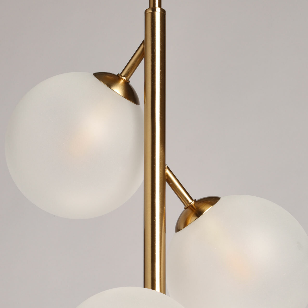 Необычный цвет латуни притягивает к себе внимание. Ассиметричное расположение стеклянных плафонов придает люстре индивидуальность. Матированные плафоны мягко рассеивают свет и создают комфортное освещение. Заменяемые источники света удобны в эксплуатации. Металлическое основание подвесной люстры гальванизировано в цвет латуни. Стеклянные плафоны выдуваются в форму вручную и матируются.
