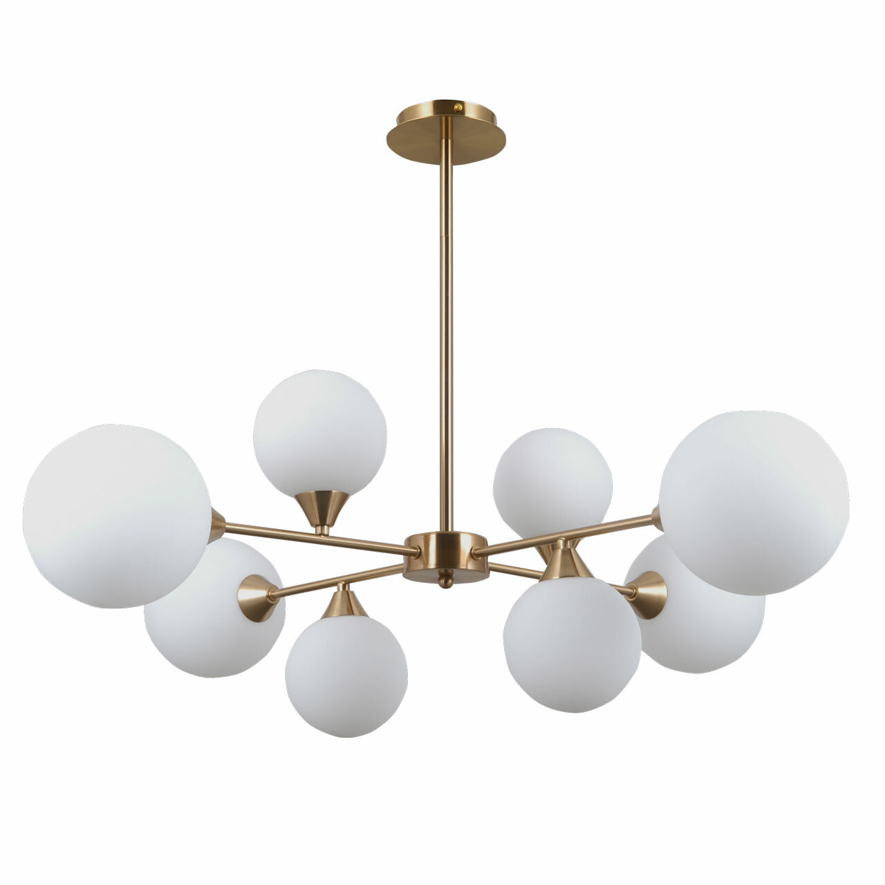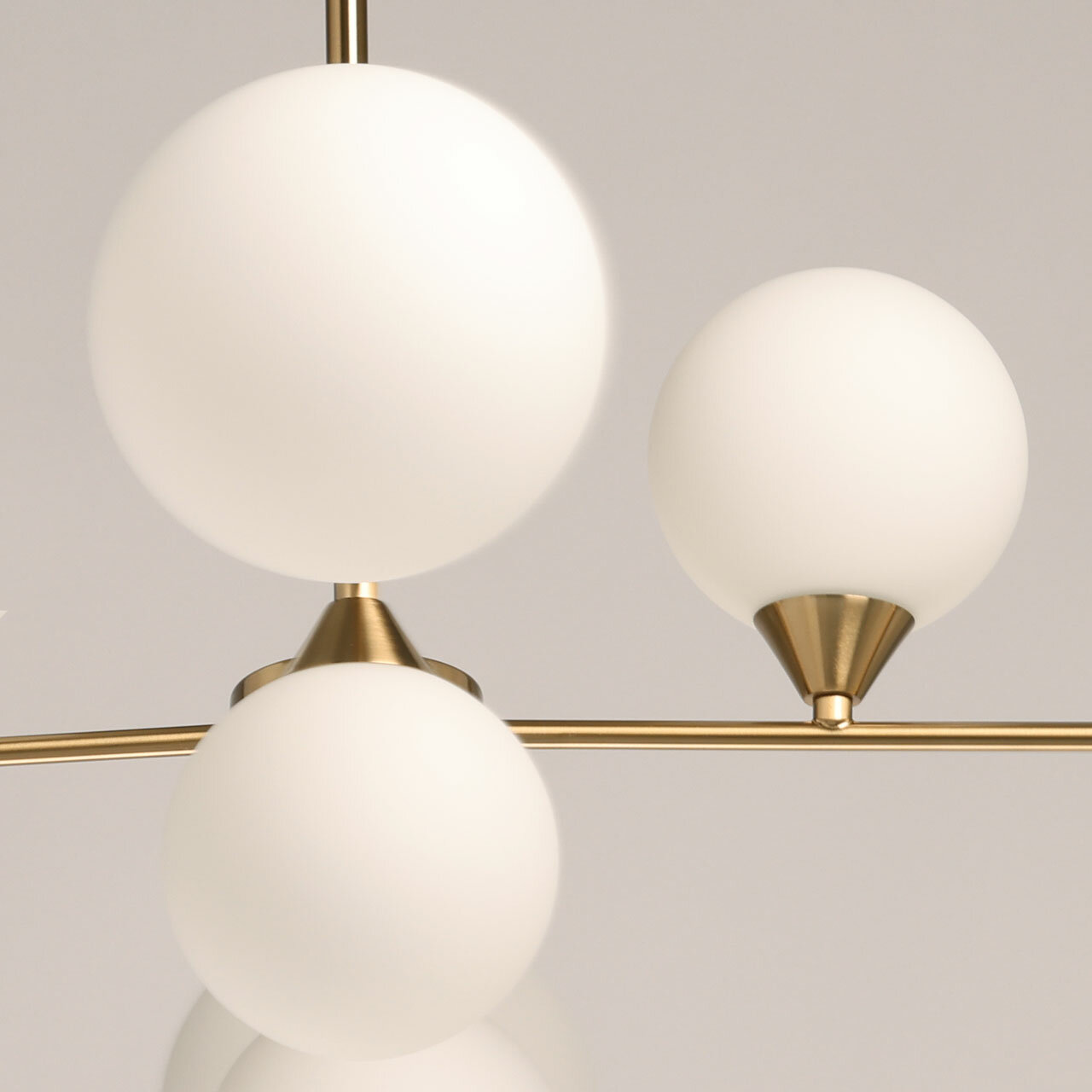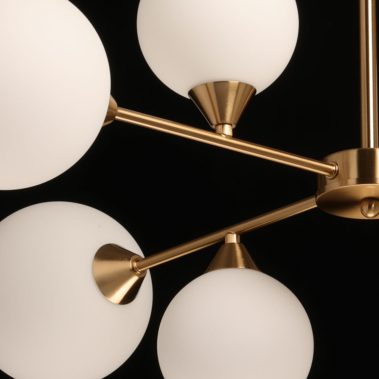 Необычный цвет латуни притягивает к себе внимание. Ассиметричное расположение стеклянных плафонов придает люстре индивидуальность. Матированные плафоны мягко рассеивают свет и создают комфортное освещение. Заменяемые источники света удобны в эксплуатации. Металлическое основание подвесной люстры гальванизировано в цвет латуни. Стеклянные плафоны выдуваются в форму вручную и матируются.