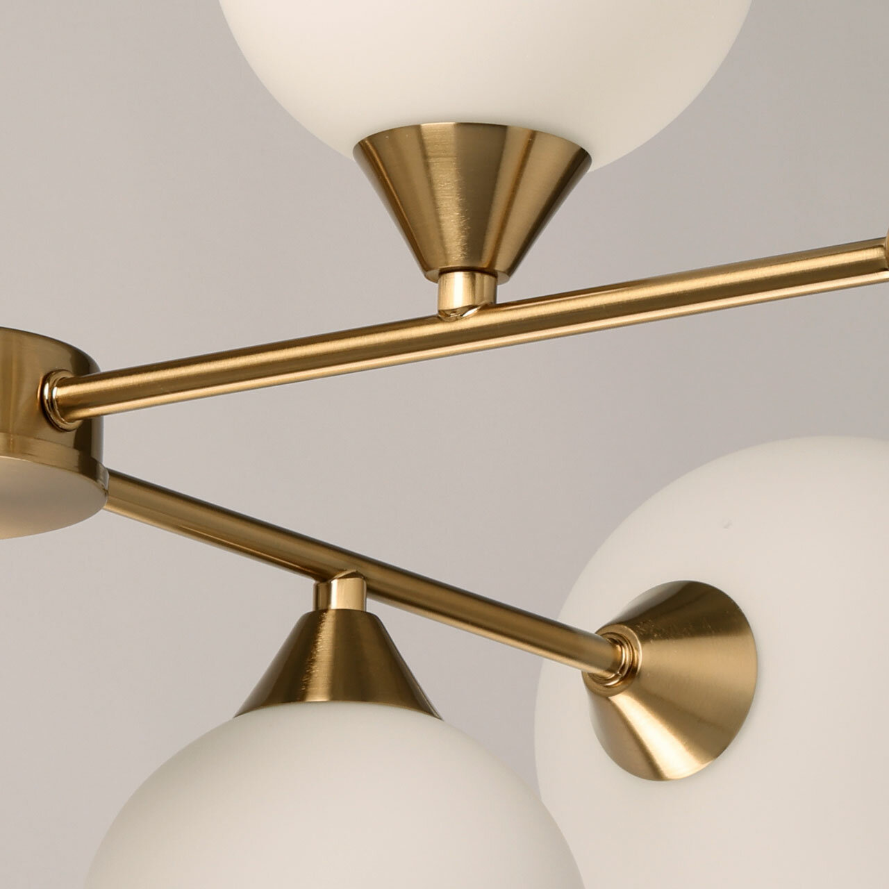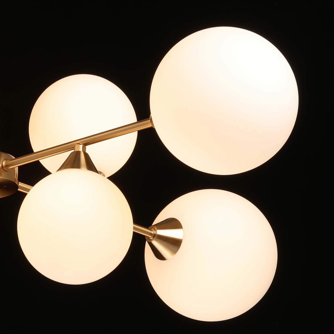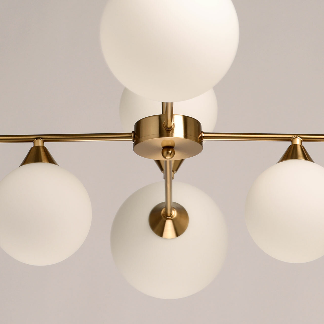 Необычный цвет латуни притягивает к себе внимание. Ассиметричное расположение стеклянных плафонов придает люстре индивидуальность. Матированные плафоны мягко рассеивают свет и создают комфортное освещение. Заменяемые источники света удобны в эксплуатации. Металлическое основание подвесной люстры гальванизировано в цвет латуни. Стеклянные плафоны выдуваются в форму вручную и матируются.