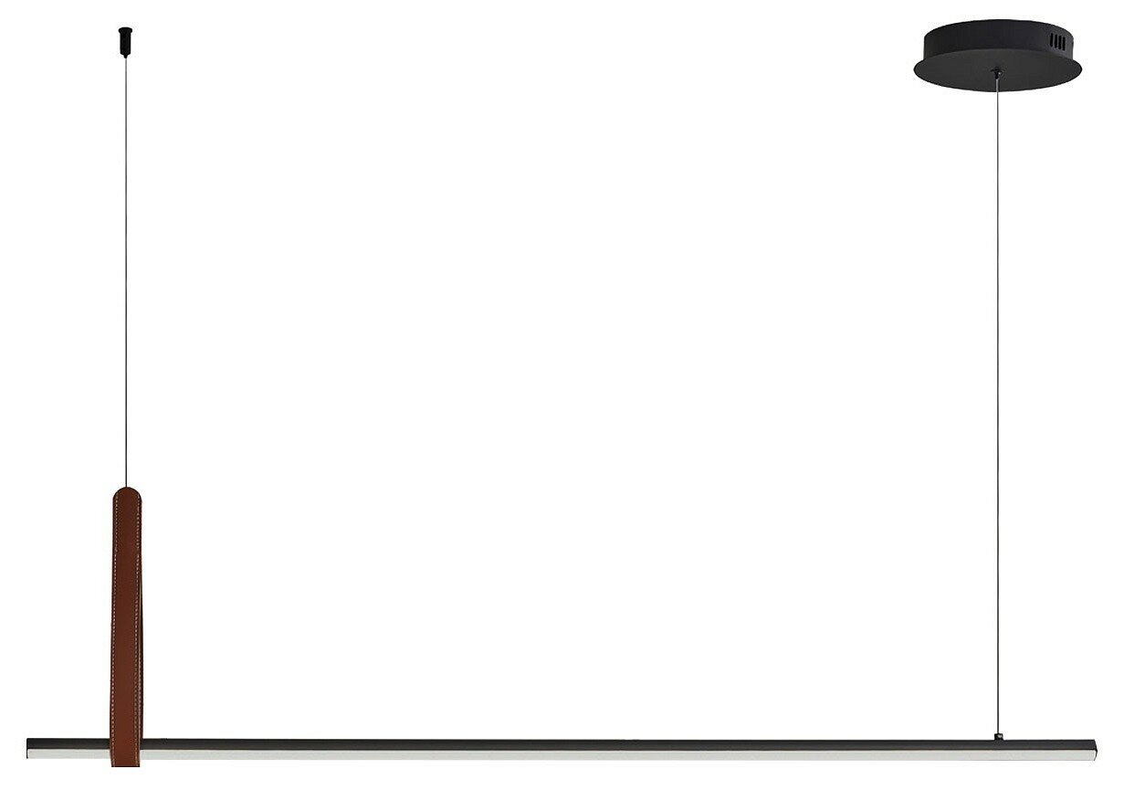 Стильный черный цвет основания придает подвесной люстре индивидуальность. Белый матовый акрил создает мягкий и рассеянный свет, создавая в комнате уют и атмосферность. Держатель из экокожи коричневого цвета добавляет теплоту и элегантность к общему дизайну. Экокожа - это экологически дружественный материал, который имитирует текстуру настоящей кожи, придавая люстре стильный вид. Комбинация черного металлического основания, сплава алюминия с цинком и белого матового акрила создает современный и эстетичный образ люстры. Она подходит для различных интерьеров и может стать главным акцентом в комнате. Возможность регулировать комфортную высоту. Светодиодные источники света экономичны и безопасны. Металлическое основание подвесной люстры окрашено в черный цвет. Корпус плафона выполнен из сплава алюминия с цинком и окрашен в цвет основания. Светодиодные источники света закрыты белым матовым акрилом. Подвесная люстра декорирована держателем из экокожи коричневого цвета.