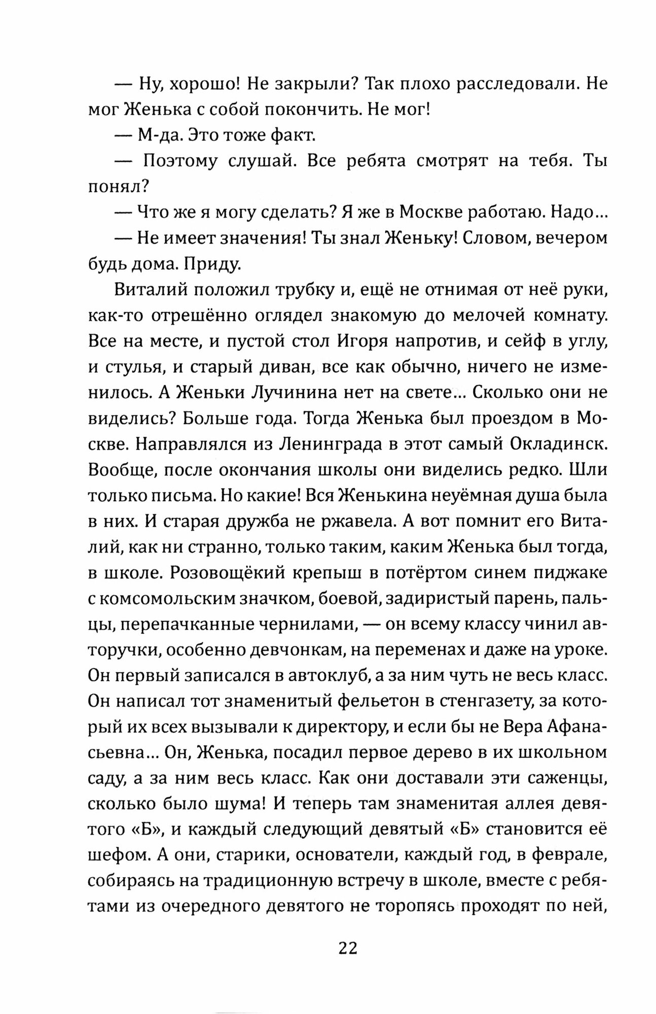 Аркадий Адамов - основоположник и классик советского детектива, а инспектор Виталий Лосев - его любимый герой, которому автор придал и собственные черты. В этой повести рассказывается о молодости старшего лейтенанта Лосева, который распутал убийство друга своего детства. Напряженная интрига, точные психологические портреты героев. И вместе с тем - фотография эпохи. Очень точная и колоритная. Хотите знать, как жили в СССР честные люди и преступники? Читайте самую близкую к реальности повесть Аркадия Адамова.