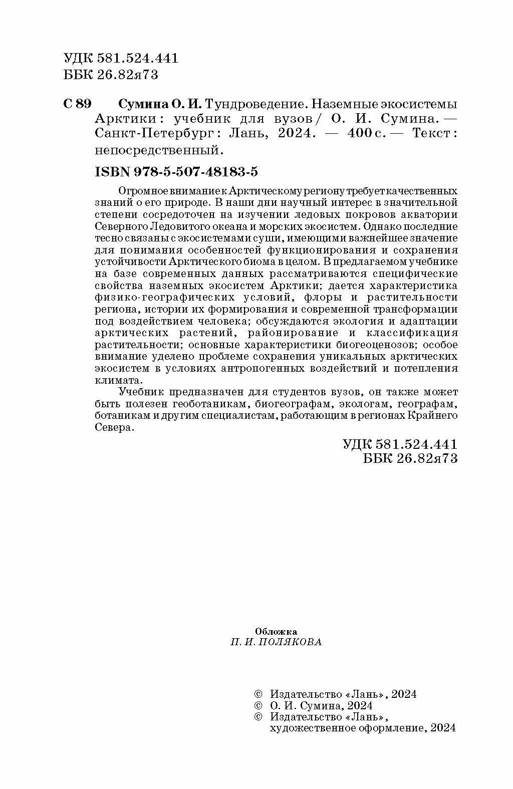 Тундроведение. Наземные экосистемы Арктики. Учебник для вузов (Ольга Сумина); Издательство ЛАНЬ, 2024
