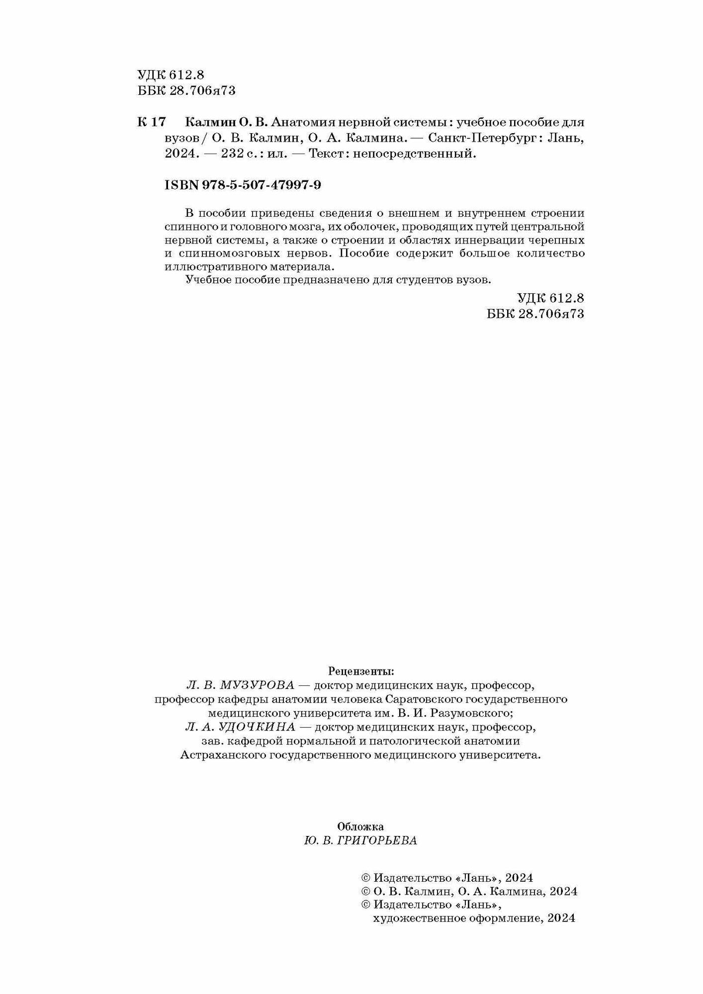 Анатомия нервной системы. Учебное пособие для вузов (О. В. Калмин); Издательство ЛАНЬ, 2024