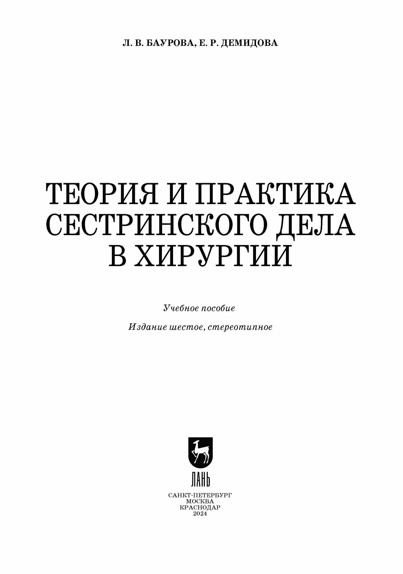 Теория и практика сестринского дела в хирургии. Учебное пособие для СПО (Баурова Лариса Викторовна); Лань, 2024