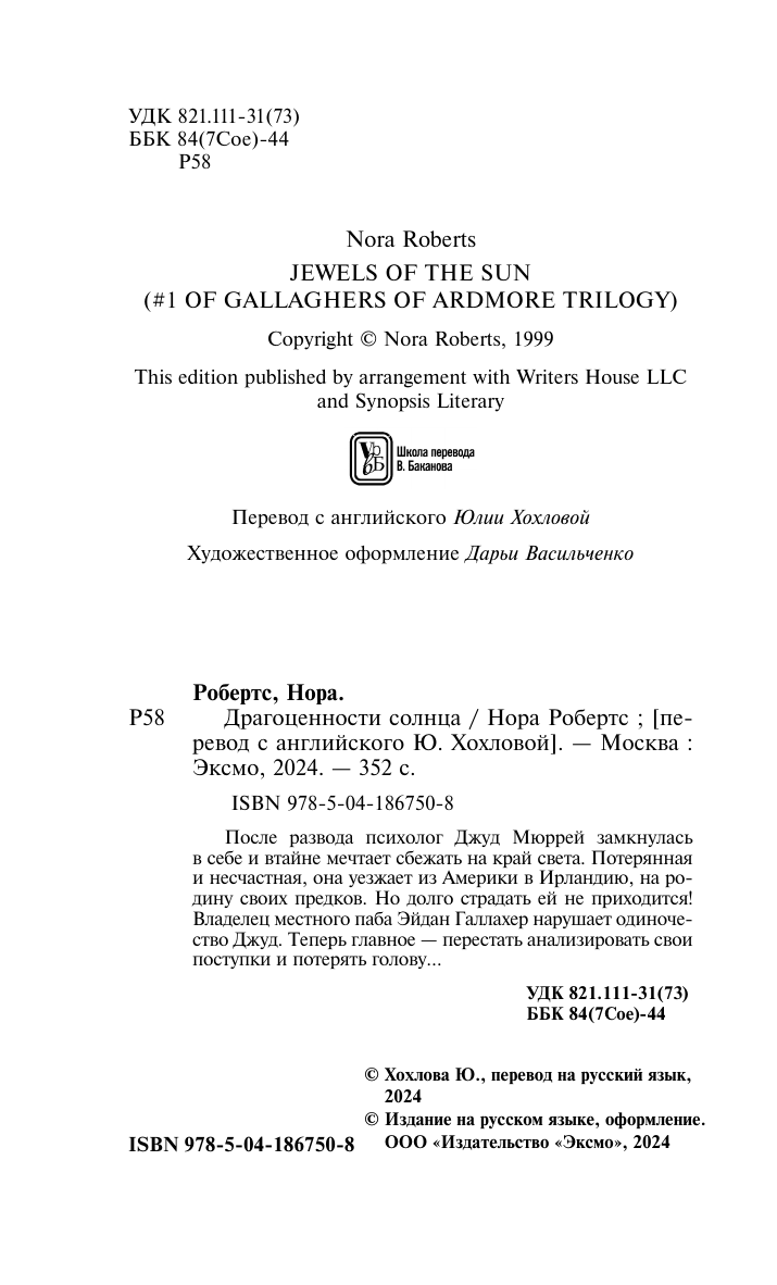 Книга: Драгоценности солнца (Нора Робертс); Эксмо, Редакция 1, 2024
