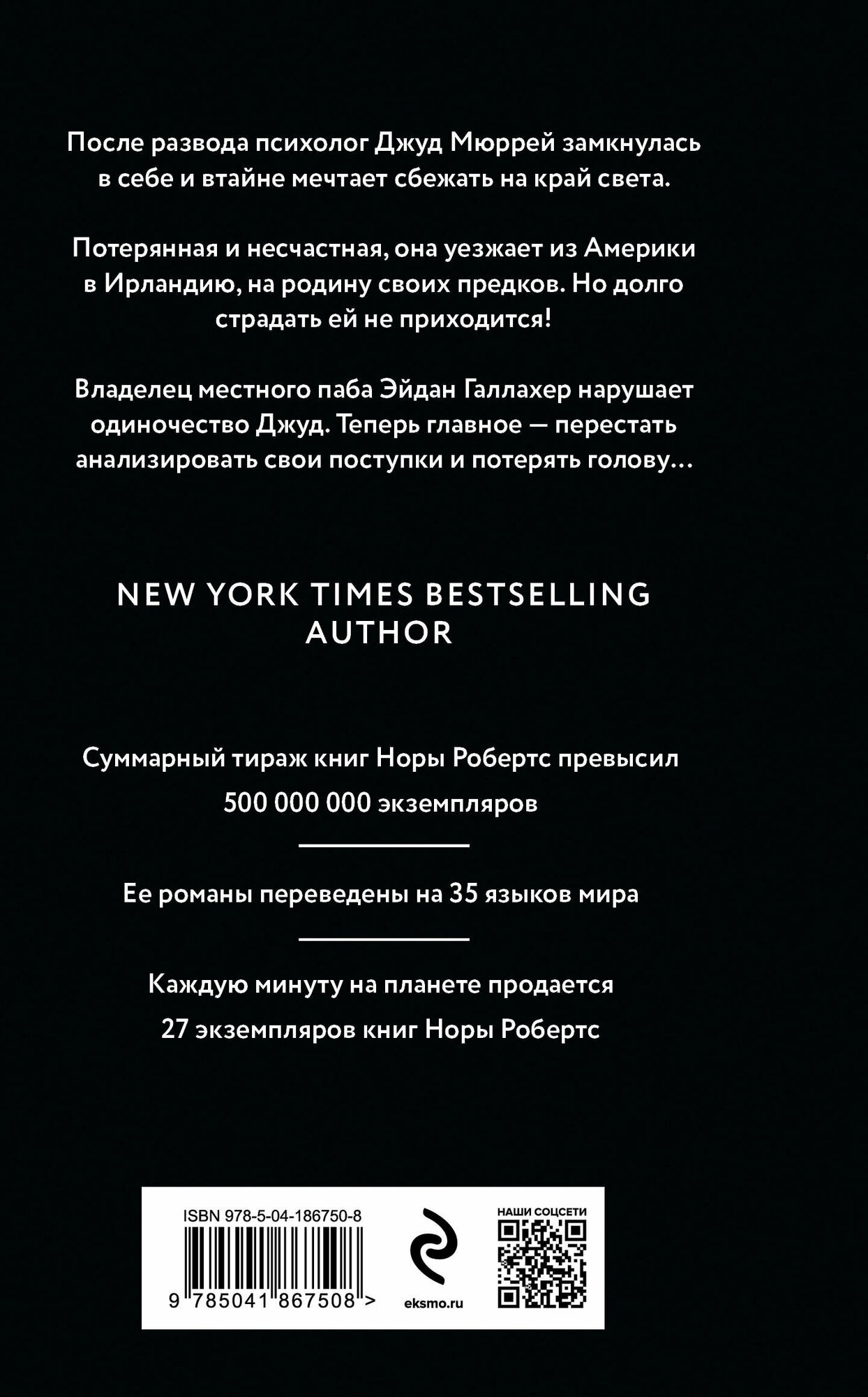 Любимая трилогия Норы Робертс в новом переводе. Нора Робертс - самая популярная американская писательница, чьи романы любят и российские читательницы. Суммарный тираж книг Норы Робертс превысил 500 млн экземпляров. Ее романы переведены на 35 языков мира. Каждую минуту на планете продается 27 экземпляров книг Норы Робертс. После развода психолог Джуд Мюррей замкнулась в себе и втайне мечтает сбежать на край света. Потерянная и несчастная, она уезжает из Америки в Ирландию, на родину своих предков. Но долго страдать ей не приходится! Владелец местного паба Эйдан Галлахер нарушает одиночество Джуд. Теперь главное - перестать анализировать свои поступки и потерять голову.