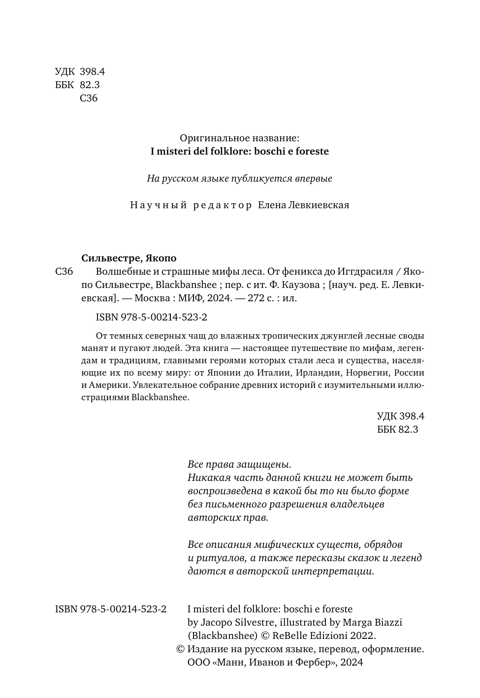 Волшебные и страшные мифы леса. От феникса до Иггдрасиля (Якопо Сильвестре, Марга Бьяцци (Blackbanshee), Федор Каузов); МИФ, 2024