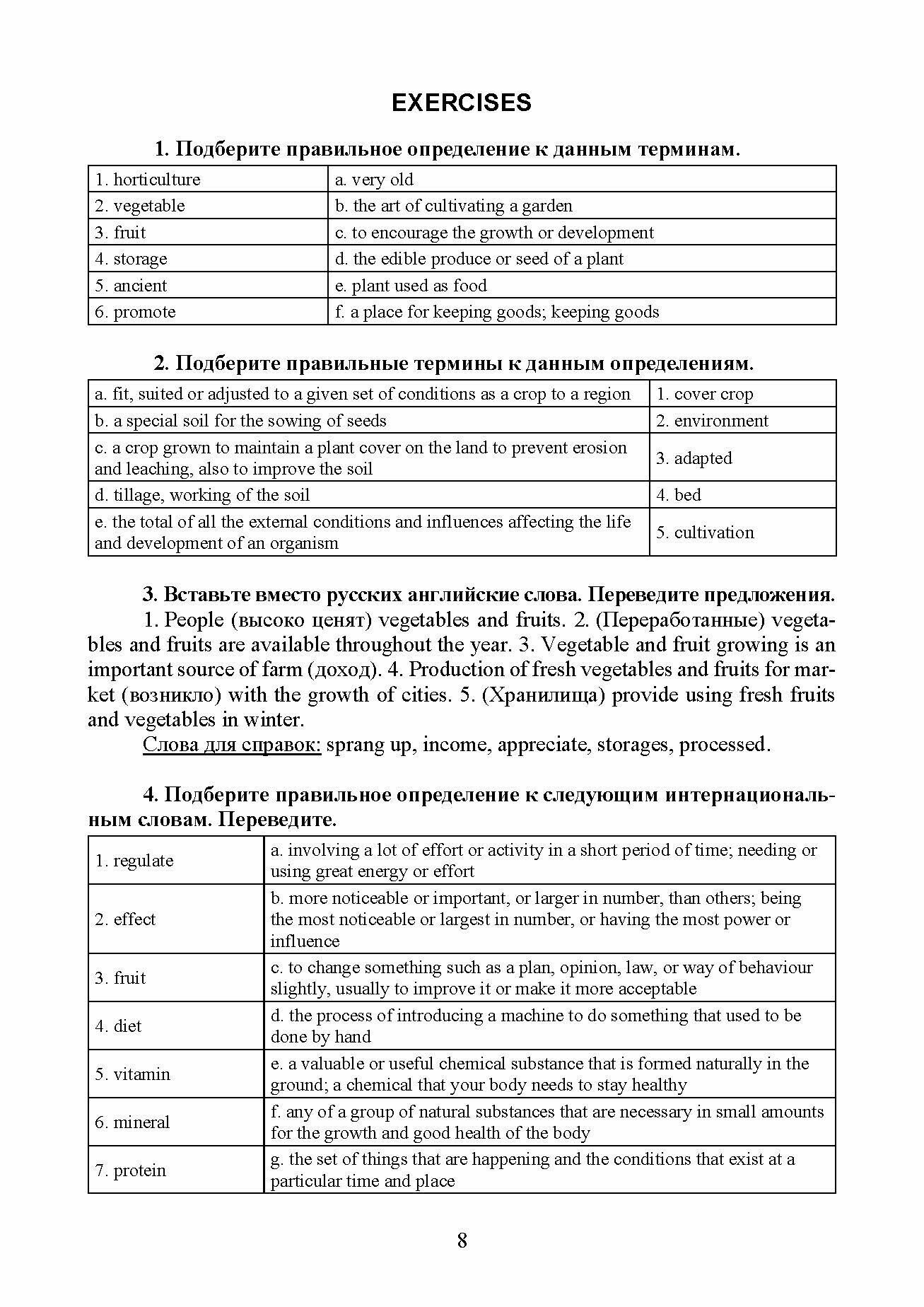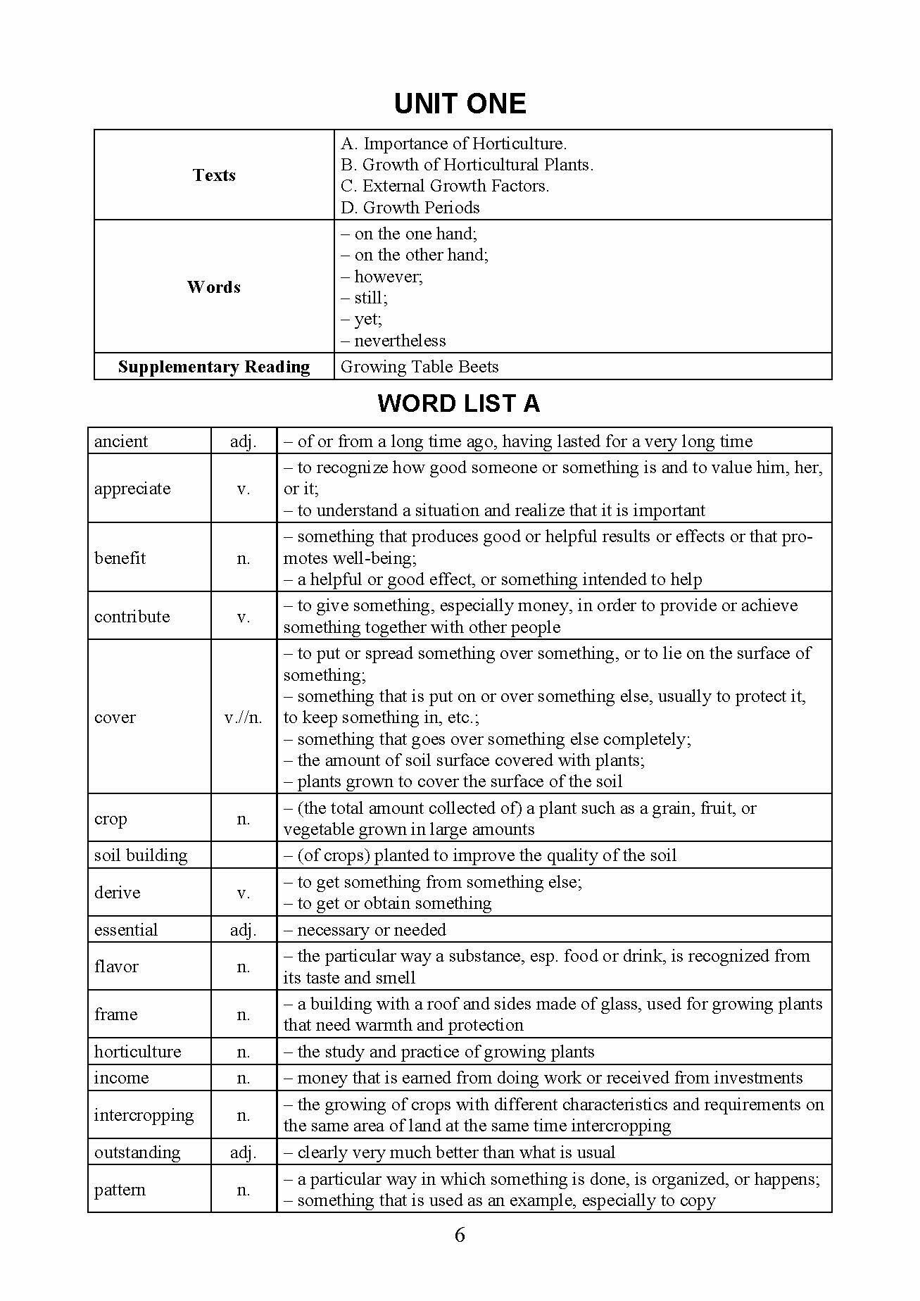 Учебник предназначен главным образом для обучающихся по направлению «Садоводство» и может быть использован на любом уровне подготовки: бакалавриат, магистратура, аспирантура. Учебник составлен в соответствии с Федеральным государственным образовательным стандартом и имеет своей целью помочь обучающимся овладеть терминологическим минимумом, научиться читать и переводить оригинальную литературу по вышеуказанному направлению подготовки.