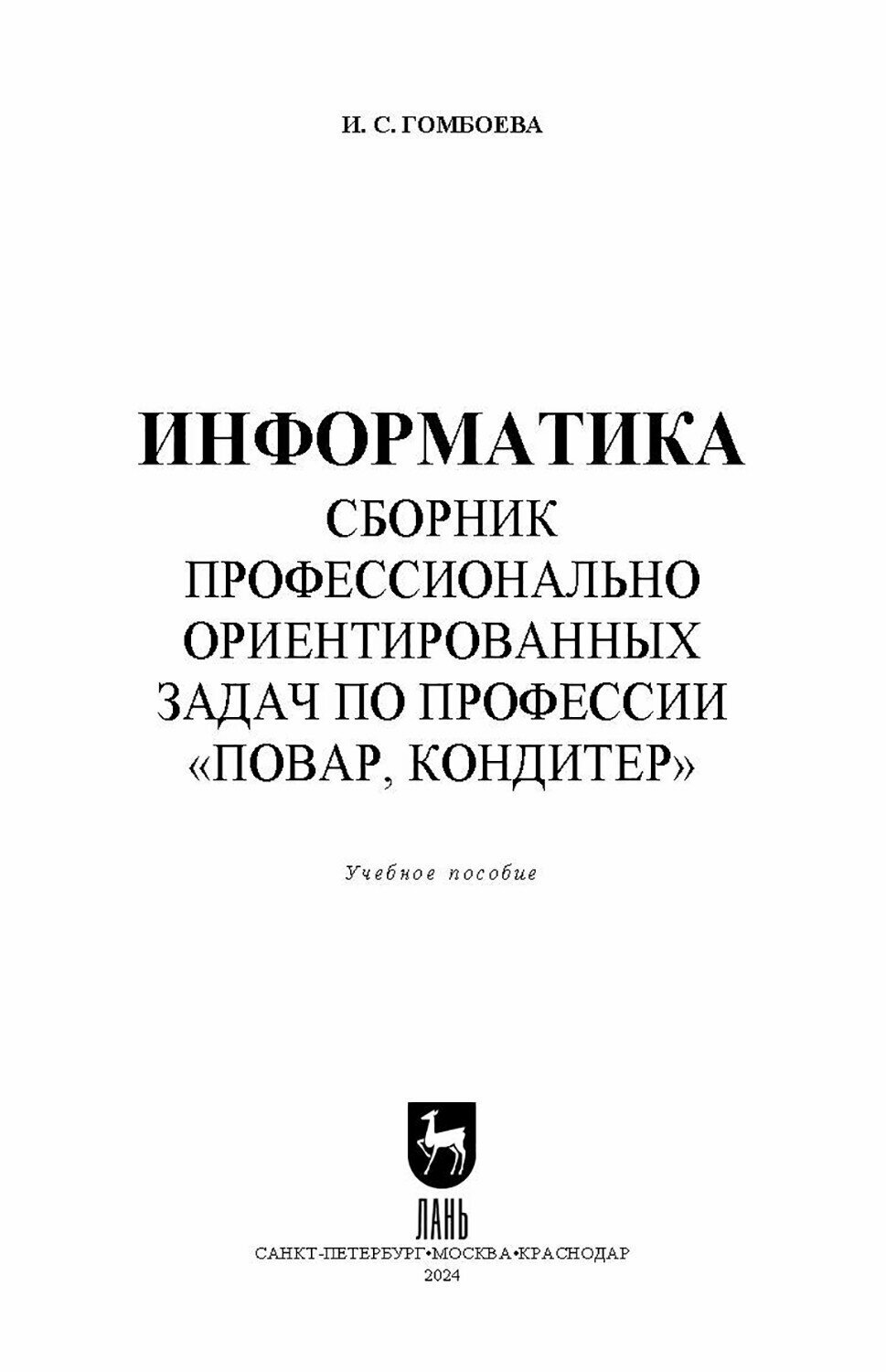 Информатика. Сборник профессионально ориентированных задач по профессии Повар кондитер (И. С. Гомбоева); Издательство ЛАНЬ, 2024