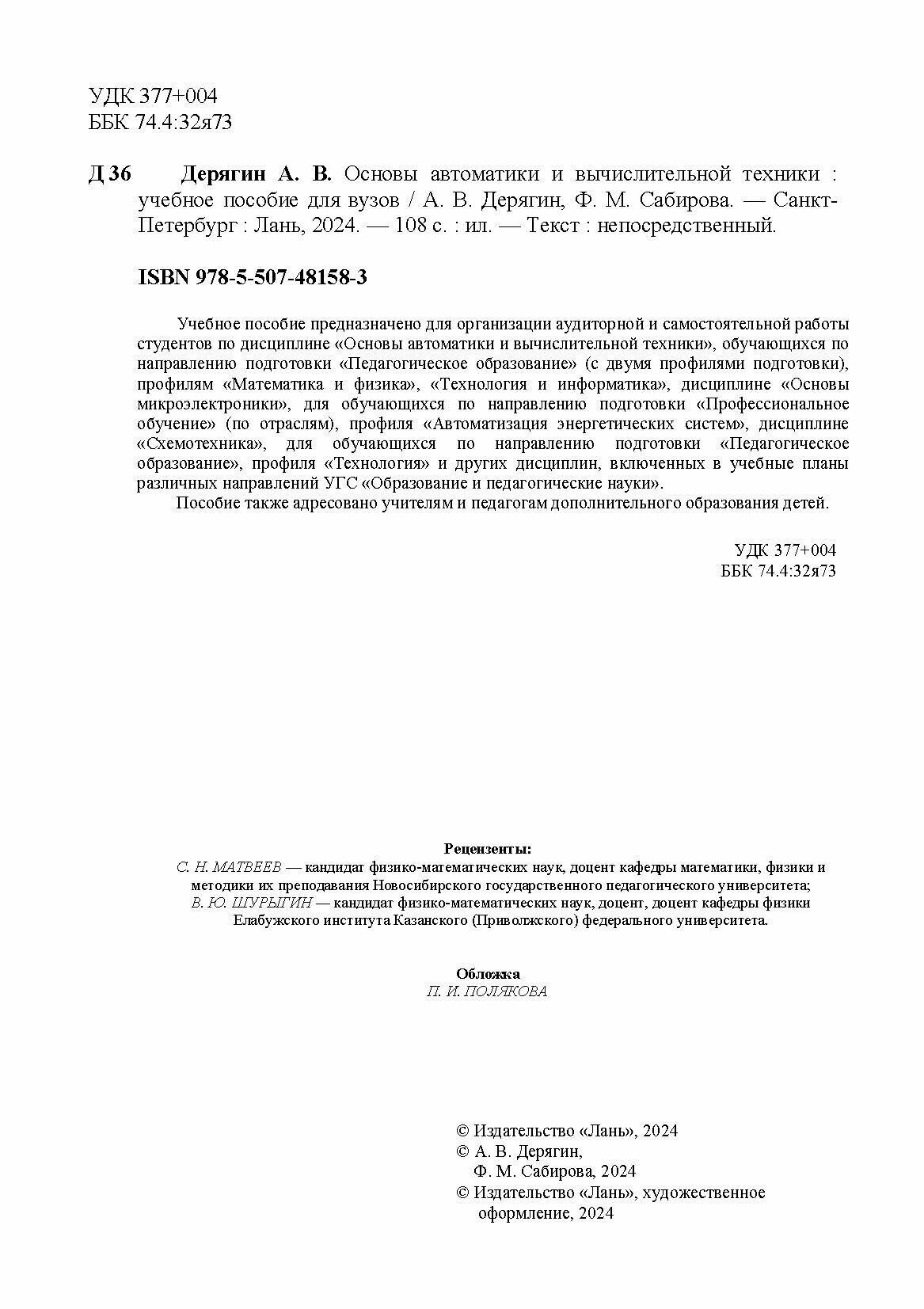 Основы автоматики и вычислительной техники. Учебное пособие для вузов (Файруза Муцсовна Сабирова); Издательство ЛАНЬ, 2024