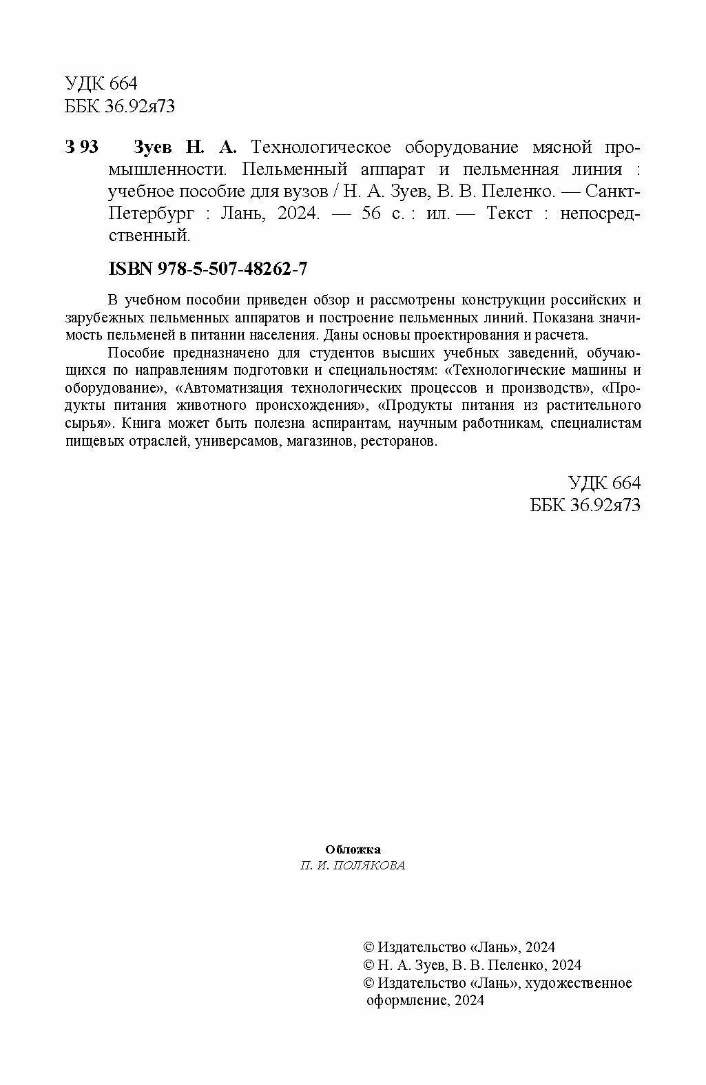 Технологическое оборудование мясной промышленности. Пельменный аппарат и пельменная линия (Зуев Николай Александрович); Лань, 2024