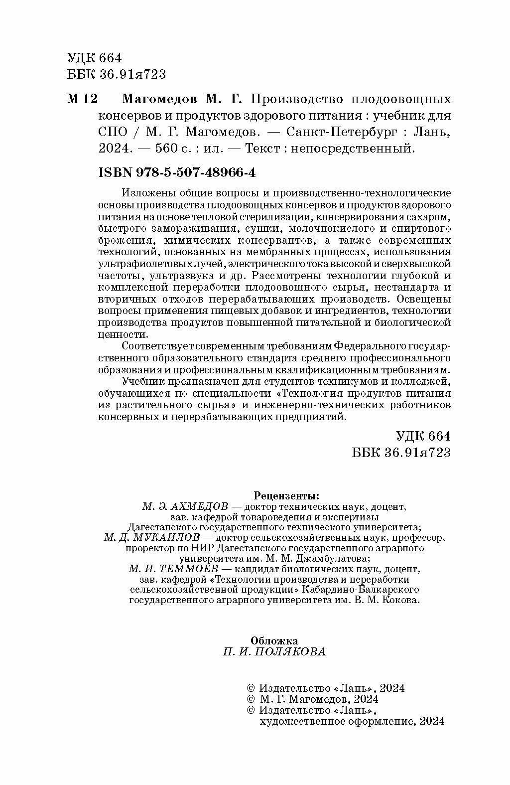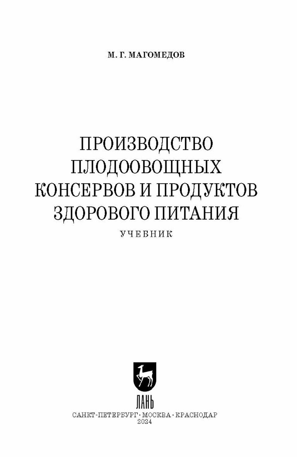 Производство плодоовощных консервов и продуктов здорового питания. Учебник для СПО (М. Г. Магомедов); Издательство ЛАНЬ, 2024