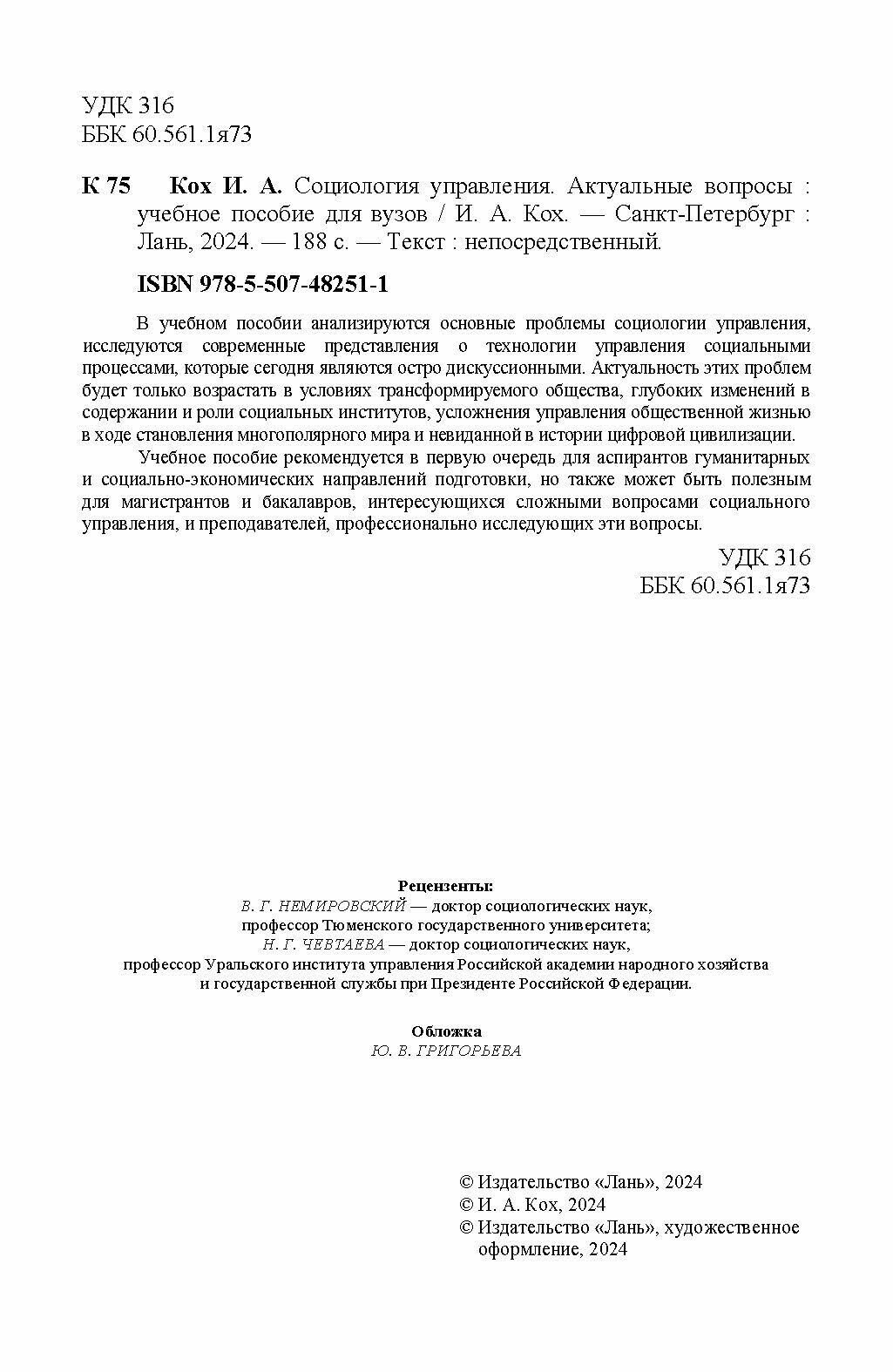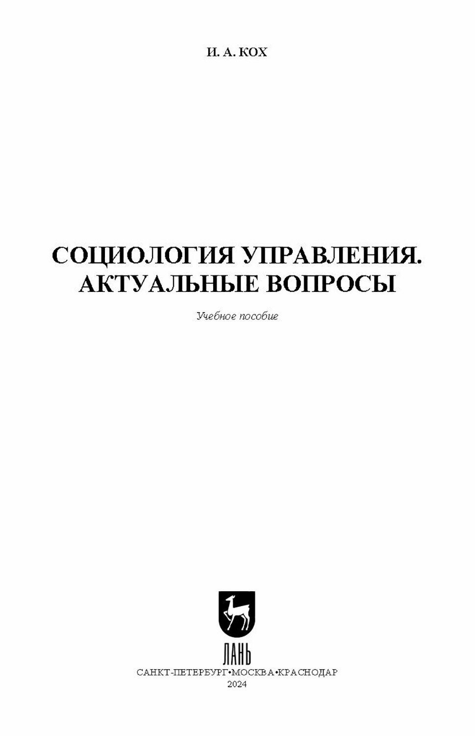 Социология управления. Актуальные вопросы. Учебное пособие для вузов (И. А. Кох); Издательство ЛАНЬ, 2024