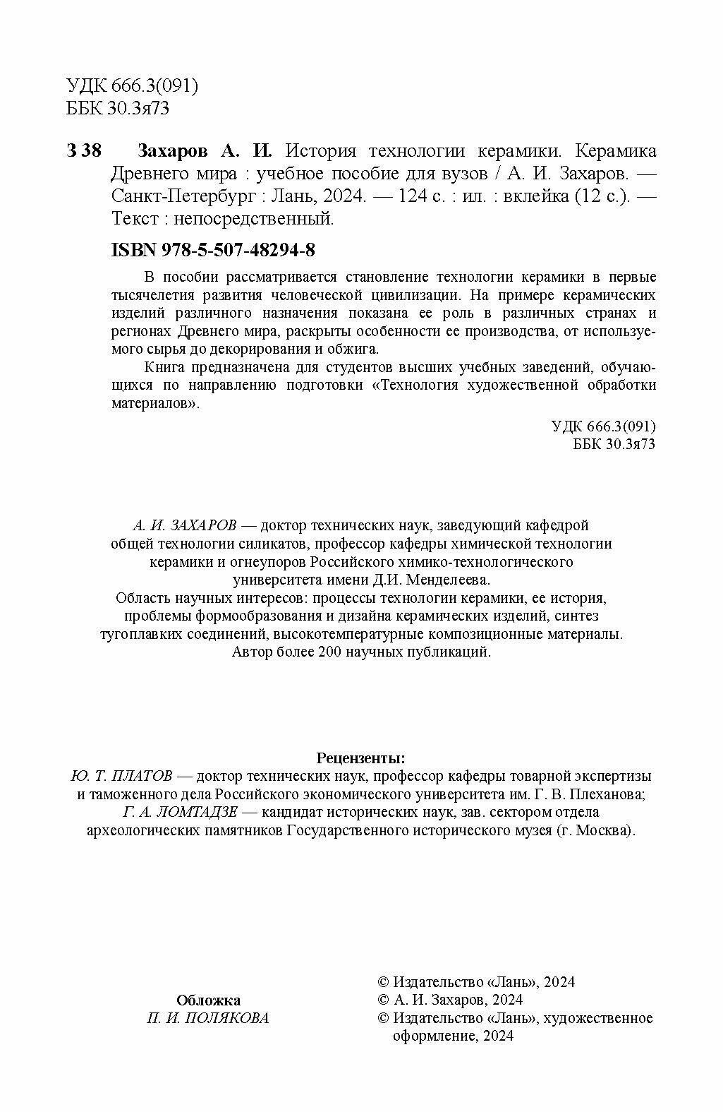 История технологии керамики. Керамика Древнего мира. Учебное пособие для вузов (Захаров Александр Иванович); Лань, 2024