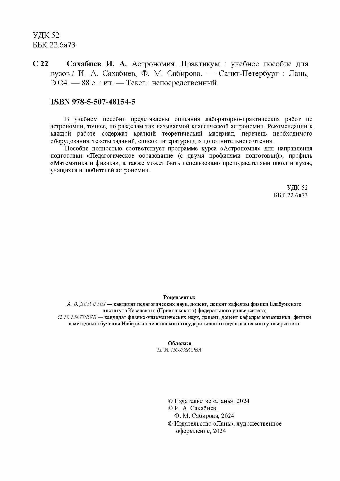 Астрономия. Практикум. Учебное пособие для вузов (Файруза Муцсовна Сабирова); Издательство ЛАНЬ, 2024