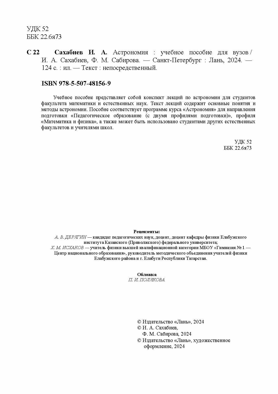 Астрономия. Учебное пособие для вузов (Файруза Муцсовна Сабирова); Издательство ЛАНЬ, 2024